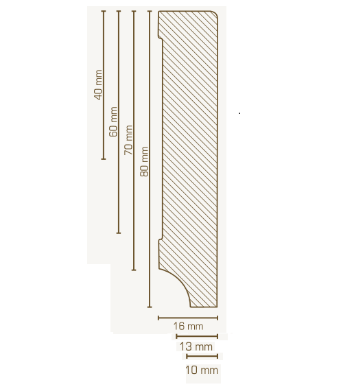 - GRÖSSE: Die Fußleiste mit den Abmessungen 16 x 80 x 2500 mm schafft einen sauberen Übergang zwischen Boden und Wand.