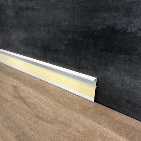 - Kleben: Montagekleber in Raupenform oder in mehreren Punkten auf die Leistenrückseite aufgetragen. Anschließend Leiste auf dem Boden aufsetzen und fest an die Wand drücken.