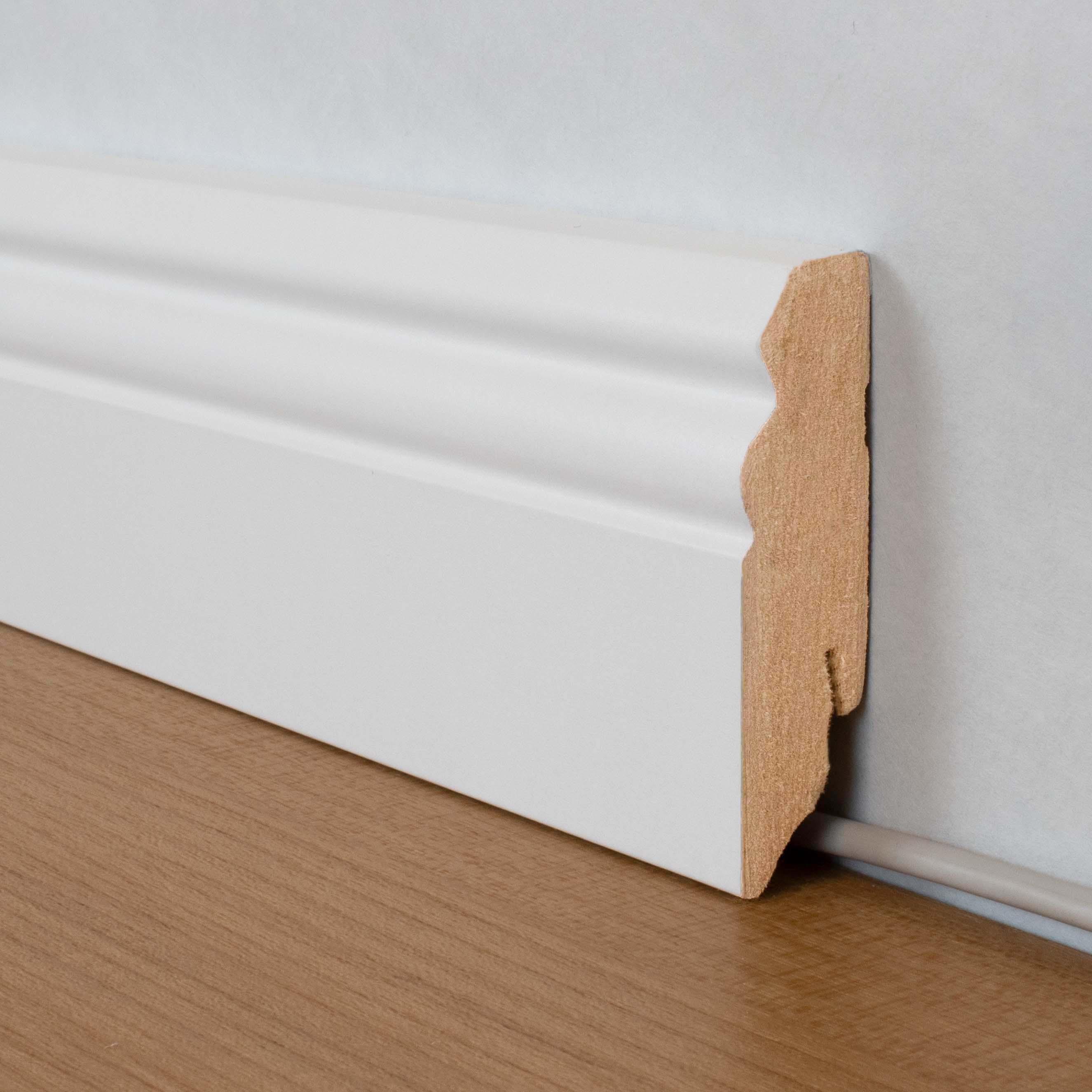 PROVISTON Fußleiste MDF Sockelleiste 18 x 70 x 2400 mm Weiß Foliert Berliner Profil