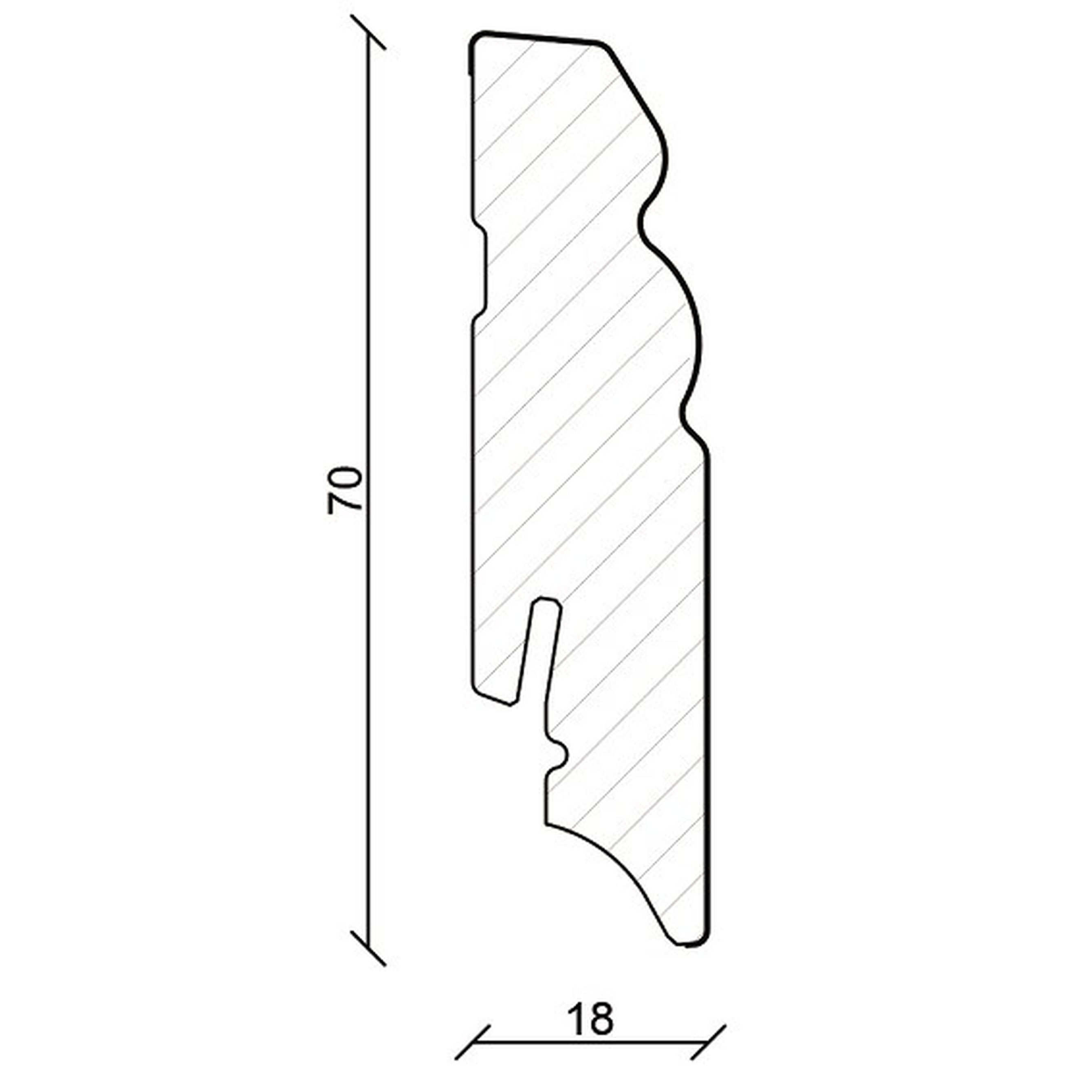 - GRÖSSE: Die Fußleiste mit den Abmessungen 18 x 70 x 2400 mm schafft einen sauberen Übergang zwischen Boden und Wand.