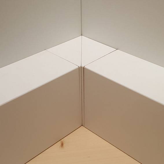 Tipp für Winkel und Ecken: Erspare Dir das aufwendige Zuschneiden auf Gehrung für Ecken. Für viele unserer Leisten bieten wir bereits fertig zugeschnittene Winkel an. Du erhältst einen Innen- oder Außenwinkel, den Du nur noch in der Mitte schneiden musst. In allen anderen Fällen kannst Du alternativ Universal-Holzecken in unterschiedlichen Stärken für den perfekten Leistenabschluss nutzen. Schaue dazu unter den Reiter "Zubehör".