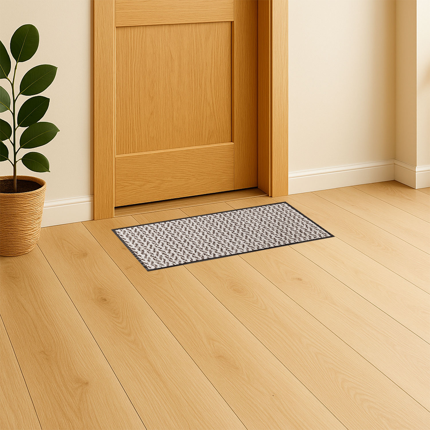 Ob im Flur, in der Küche, im Kinderzimmer oder Wohnzimmer: Die Floornovo Eco Line Matten sorgen überall für Sauberkeit und ein gutes Gewissen. Das zweifarbige Fischgrätenmuster verleiht jedem Raum eine besondere Note und fügt sich harmonisch in verschiedenste Einrichtungsstile ein. Der robuste Nitrilgummirücken hält die Matte sicher an Ort und Stelle, während die hohe Schmutzaufnahme und leichte Pflege die Reinigung unkompliziert machen - ideal für Allergiker und Tierhalter.