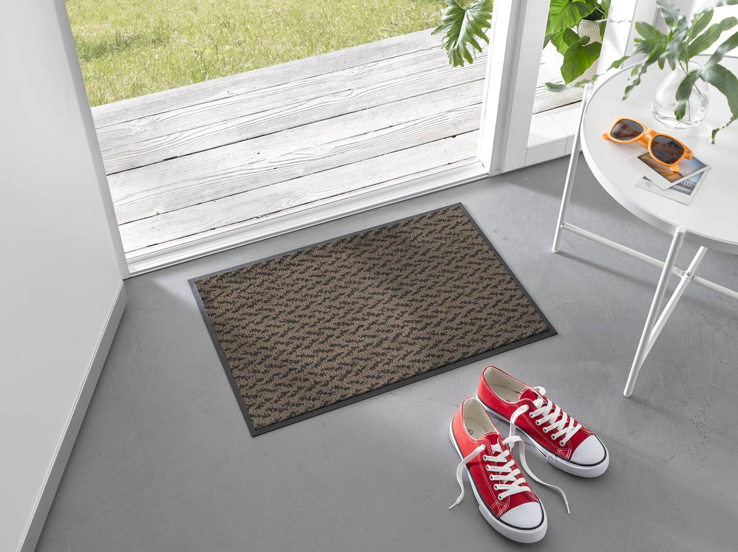 - GERINGE HÖHE: Mit einer Höhe von nur 9 mm passt die wash+dry Eco Revive Matte unter fast jede Tür.