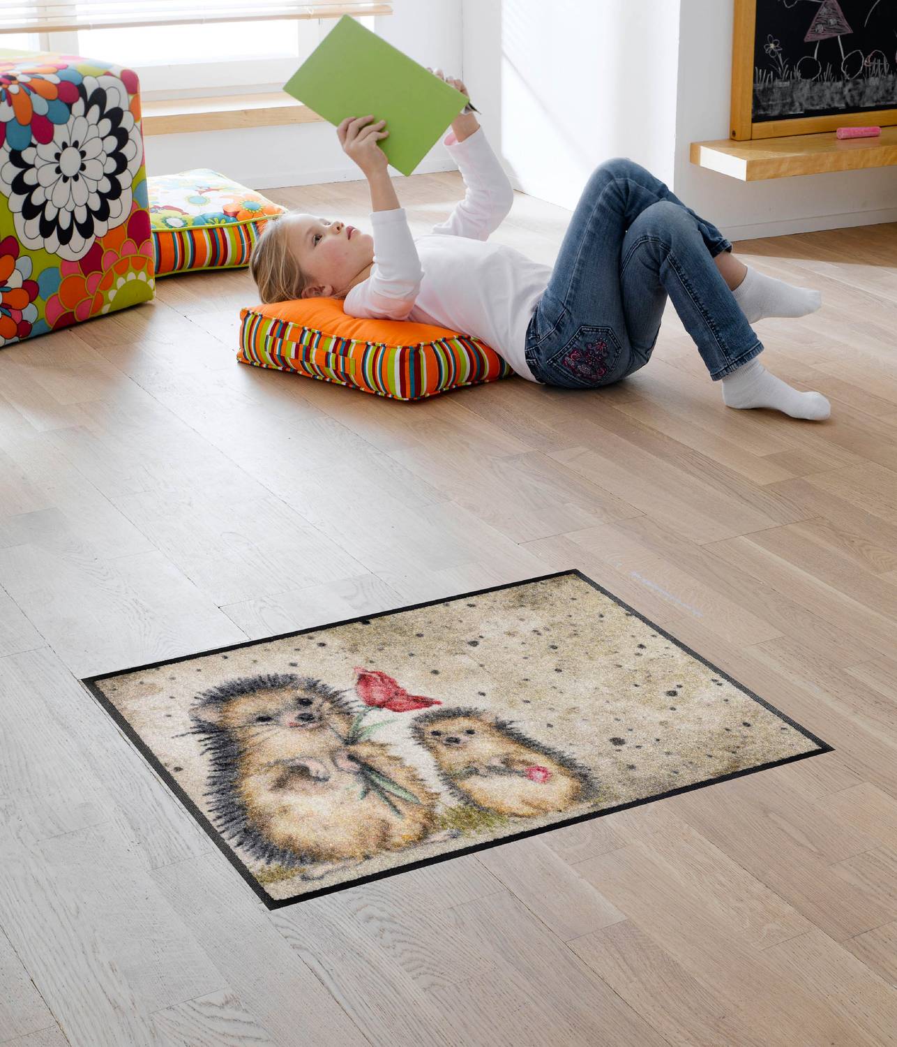 Entdecke die wash+dry Design Kollektion - Deine Lösung für ein hygienisches und stilvoll gestaltetes Zuhause! Diese hochwertigen Matten und Teppiche vereinen effektive Schmutzaufnahme mit exklusivem Design. Der dichtere, etwas höhere Flor von 7 mm sorgt für eine hervorragende Schmutzaufnahme und macht die Reinigung zum Kinderspiel. Perfekt für Allergiker und Tierbesitzer: Die hohe Schmutzbindung verbessert die Raumluftqualität spürbar. Dank der robusten, rutschfesten Beschaffenheit bieten sie sicheren Halt in Innenräumen und überdachten Außenbereichen.