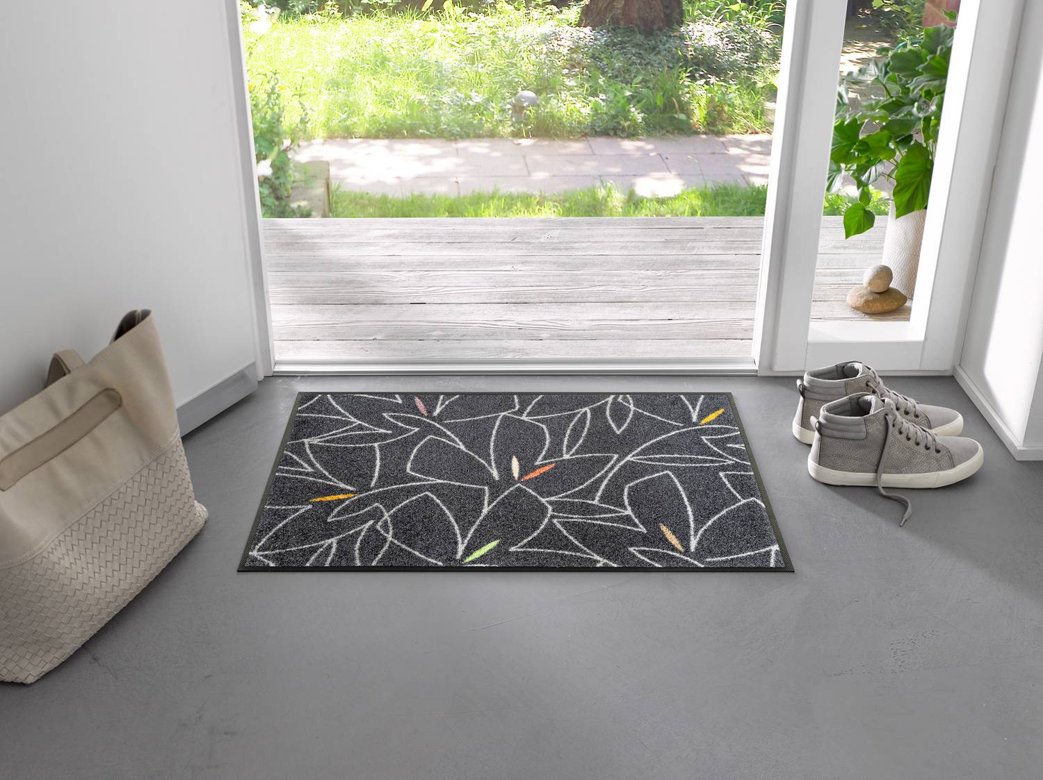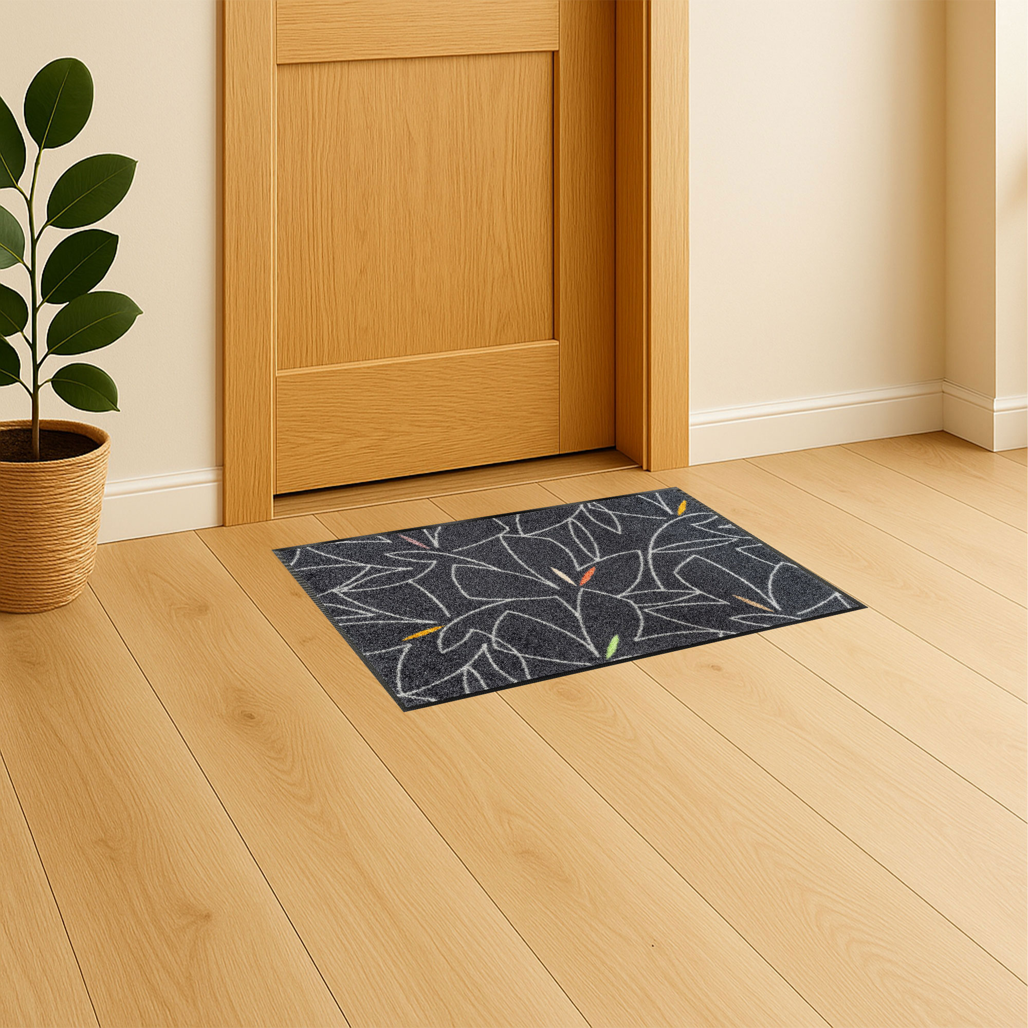 Entdecke die Trend Design Kollektion von Floornovo - die perfekte Kombination aus anspruchsvollem Look und zuverlässiger Funktionalität für Dein Zuhause! Diese Matten und Teppiche bieten eine exzellente Schmutzaufnahme und überzeugen durch ein kreatives, modernes Design. Der 7 mm hohe, dichte Flor bindet Schmutz besonders gut und sorgt dafür, dass die Reinigung schnell und einfach gelingt. Optimal geeignet für Haushalte mit Allergikern und Tieren: Die spezielle Struktur verbessert das Raumklima spürbar durch effiziente Staub- und Schmutzbindung. Der robuste, rutschfeste Rücken sorgt für festen Halt - sowohl drinnen als auch in überdachten Außenbereichen.