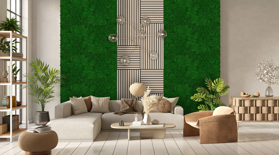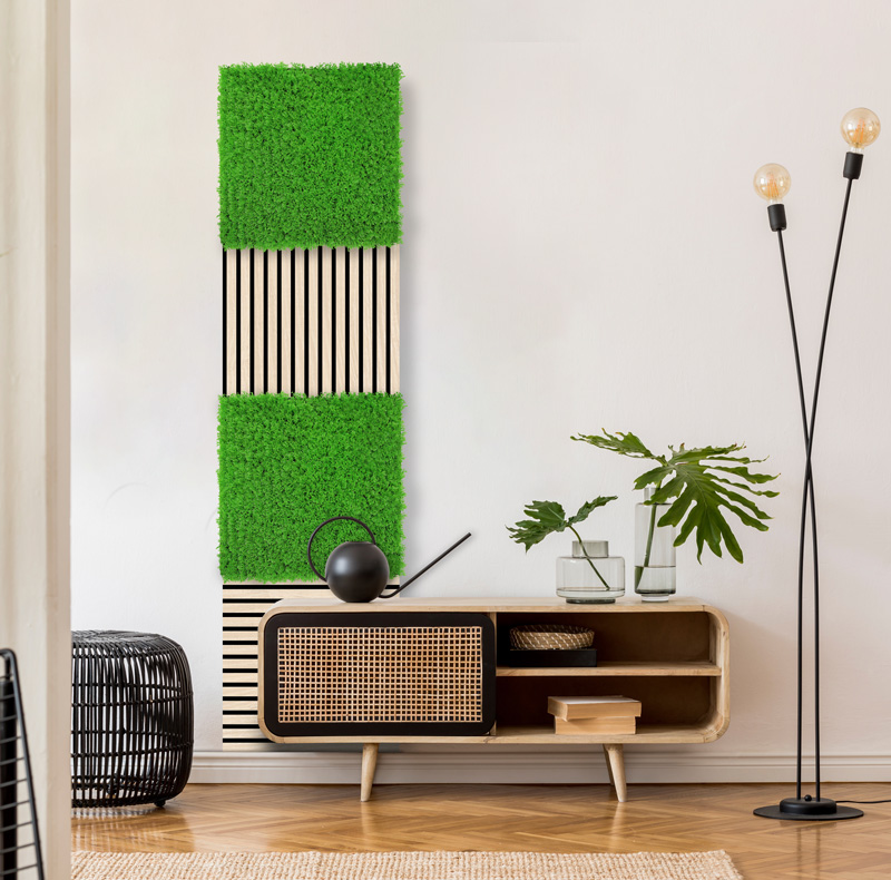 Die "JANGAL Modular Wall" Serie ermöglicht eine individuelle und kreative Raumgestaltung. Diese Akustikpaneele vereinen ästhetischen Reiz mit Funktionalität und unterstützen ein umweltfreundliches Wohnen durch eine Trägerschicht aus recyceltem PET aus alten Flaschen. Die Auswahl reicht von natürlichen Echtmoosen über künstliche Pflanzenwände aus nachhaltigen Naturfasern bis hin zu täuschend echten Pflanzenwänden, die sich nach Belieben miteinander kombinieren lassen. Das innovative Connector-System ermöglicht eine nahtlose und elegante Wandgestaltung. Mit der preisgekrönten "JANGAL Modular Wall" Serie wird Nachhaltigkeit, Qualität und Design großgeschrieben.