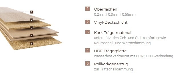 Cortex verbaut in ihren Böden eine spezielle Korkschicht. Diese Korkschicht unterstützt Geh- und Stehkomfort, sowie Wärmedämmung und Schallreduzierung. Überzeugen Sie sich selbst von den Böden von Cortex. Diese und weitere Böden finden Sie bei uns im Shop.