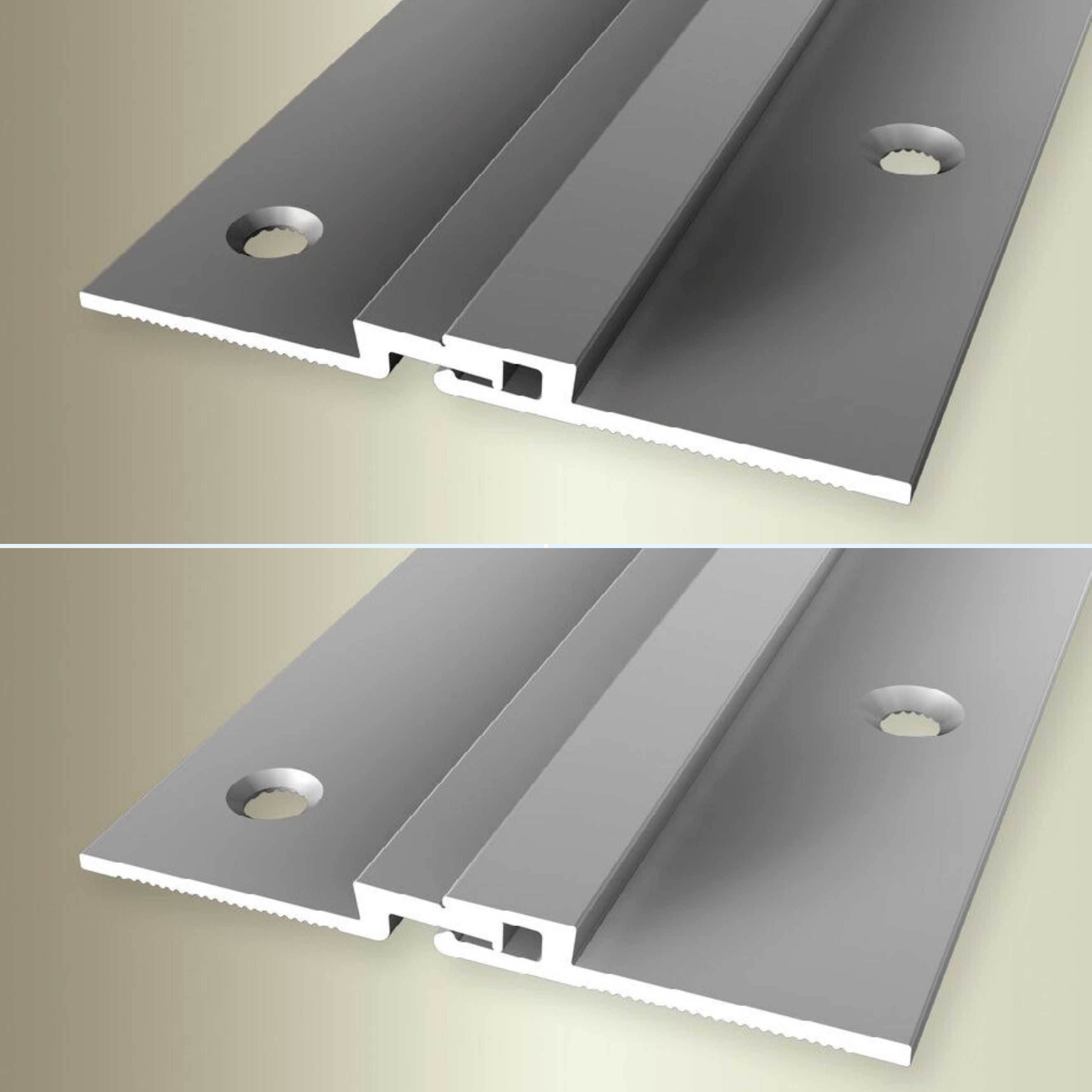 - ANWENDUNGSBEREICH: Unsere Dehnungsfugenprofile sind die perfekte Lösung für einen reibungslosen Übergang zwischen verschiedenen Bodenbelägen, sei es zwischen Vinyl und Parkett oder innerhalb der Fliesenverlegung. Sie verleihen dem Boden den benötigten Spielraum, um unschöne Verwölbungen der Dielen zu verhindern und das Risiko von Brüchen bei Fliesen deutlich zu minimieren.