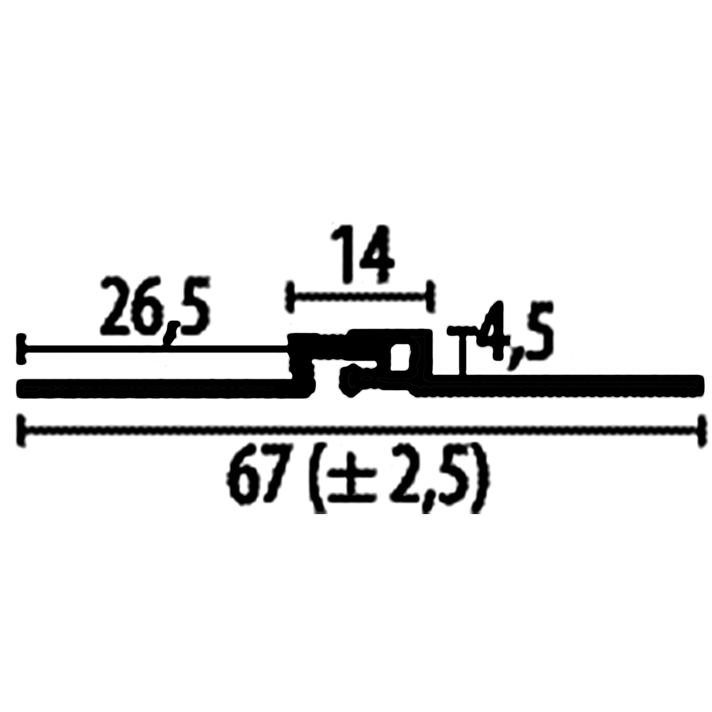 - GRÖSSE: Das Dehnungsfugenprofil verfügt über die Abmessungen 67 x 4.5 x 2700 mm und hat eine Einfasshöhe von 4.5 mm.