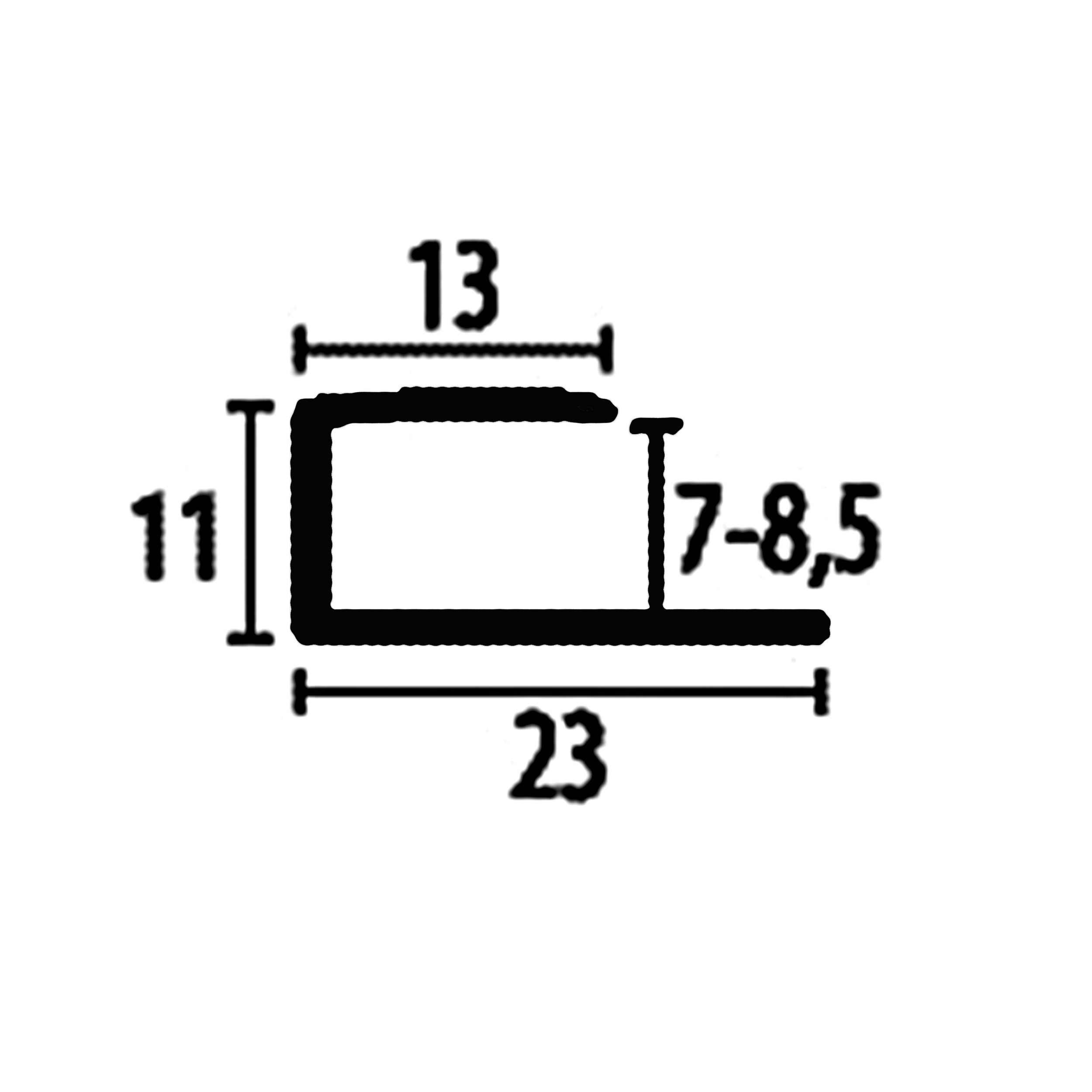 - GRÖSSE: Das Abschlussprofil mit den Abmessungen 23 x 7 - 8.5 x 2700 x 7 - 8.5 x 1.5 mm hat eine Einfassung von 7 - 8.5 mm.