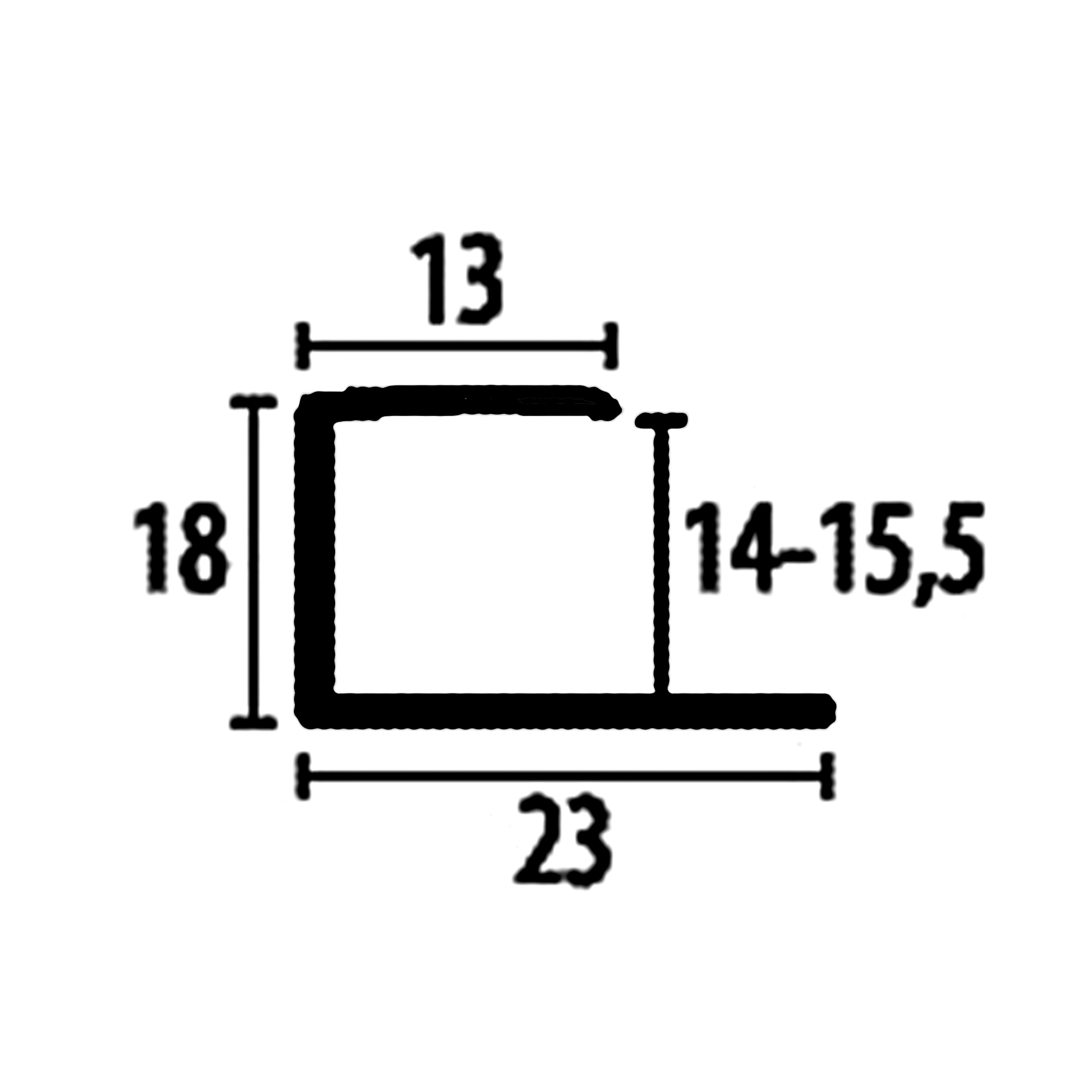 - GRÖSSE: Das Abschlussprofil mit den Abmessungen 23 x 14 - 15.5 x 2700 x 14 - 15.5 x 1.5 mm hat eine Einfassung von 14 - 15.5 mm.