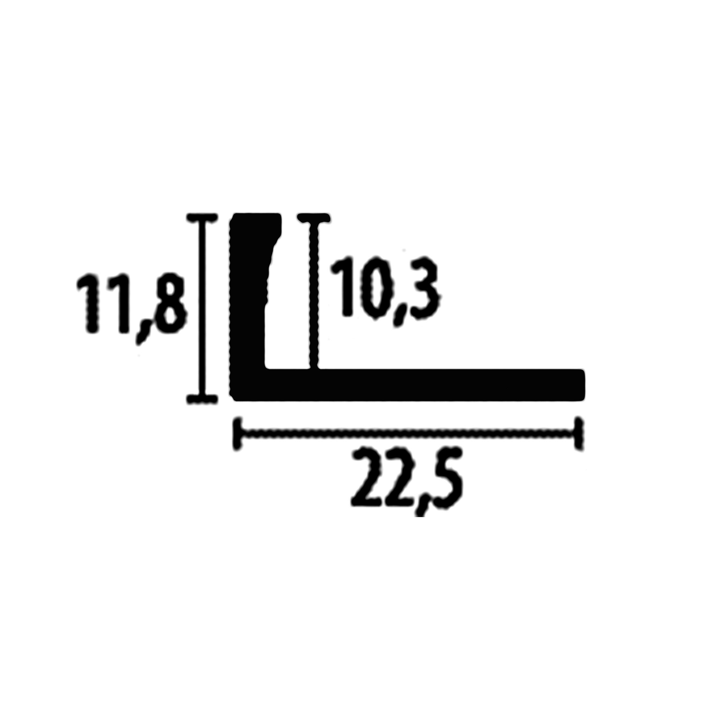 - GRÖSSE: Das Abschlussprofil mit den Abmessungen 22.5 x 11.8 x 2500 x 10.3 mm hat eine Einfassung von 10.3 mm.
