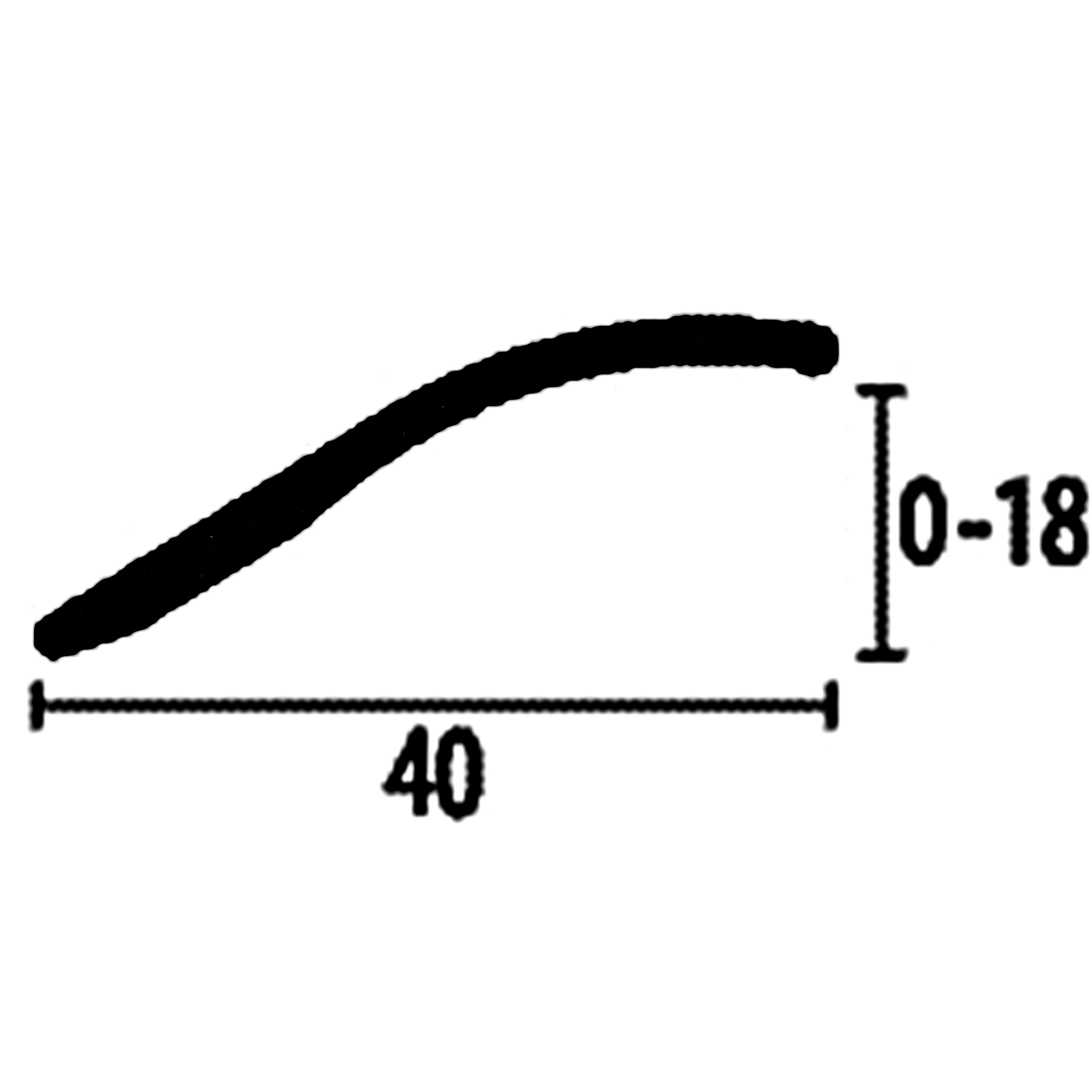 - GRÖSSE: Das Ausgleichsprofil mit den Abmessungen 40 x 0 - 18 x 1000 mm hat eine Einfasshöhe von 0 - 18 mm.