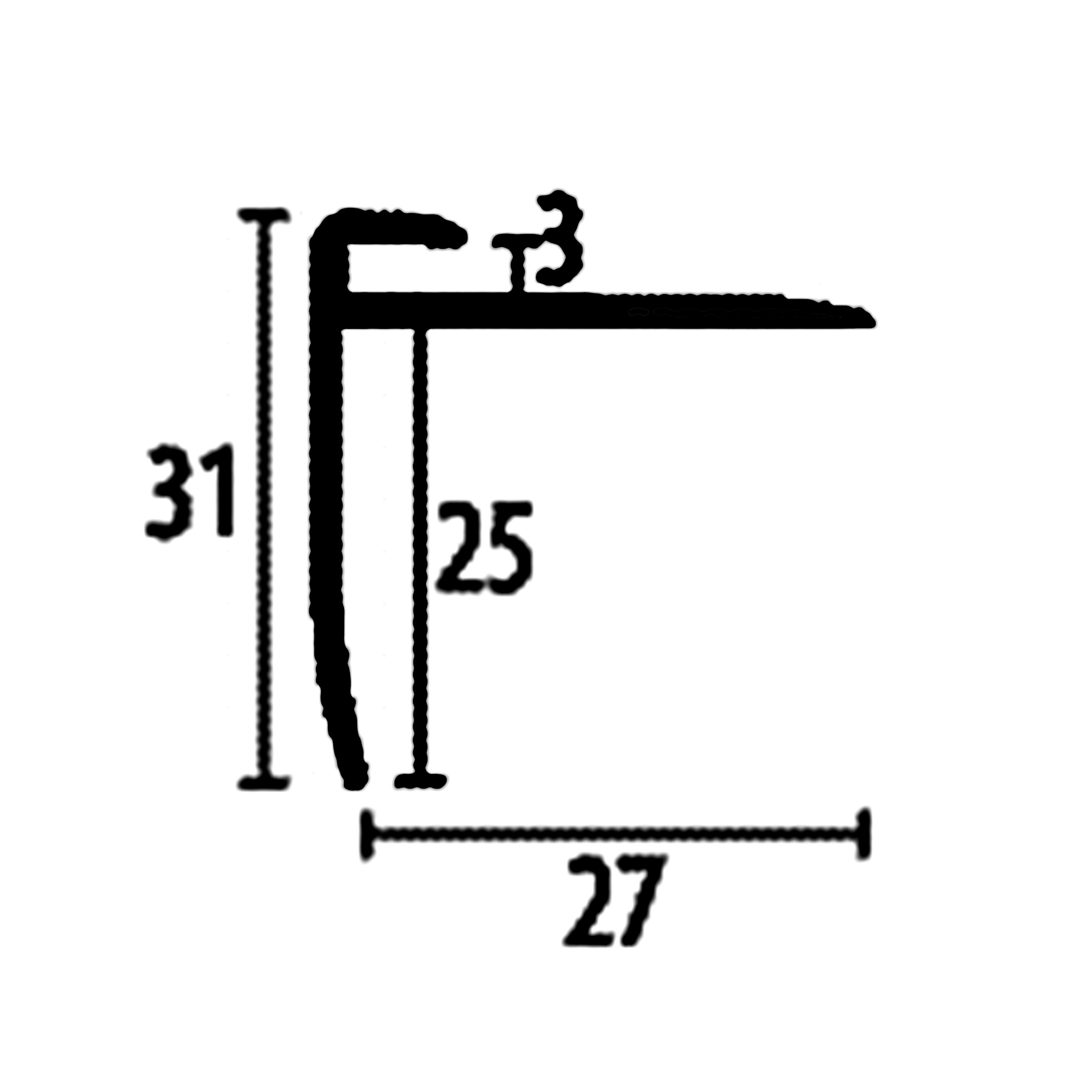 - GRÖSSE: Das Winkelprofil mit den Abmessungen 27 x 3 x 2500 mm besitzt eine Einfasshöhe von 3 mm und schafft einen sauberen Abschluss an der Treppenkante.