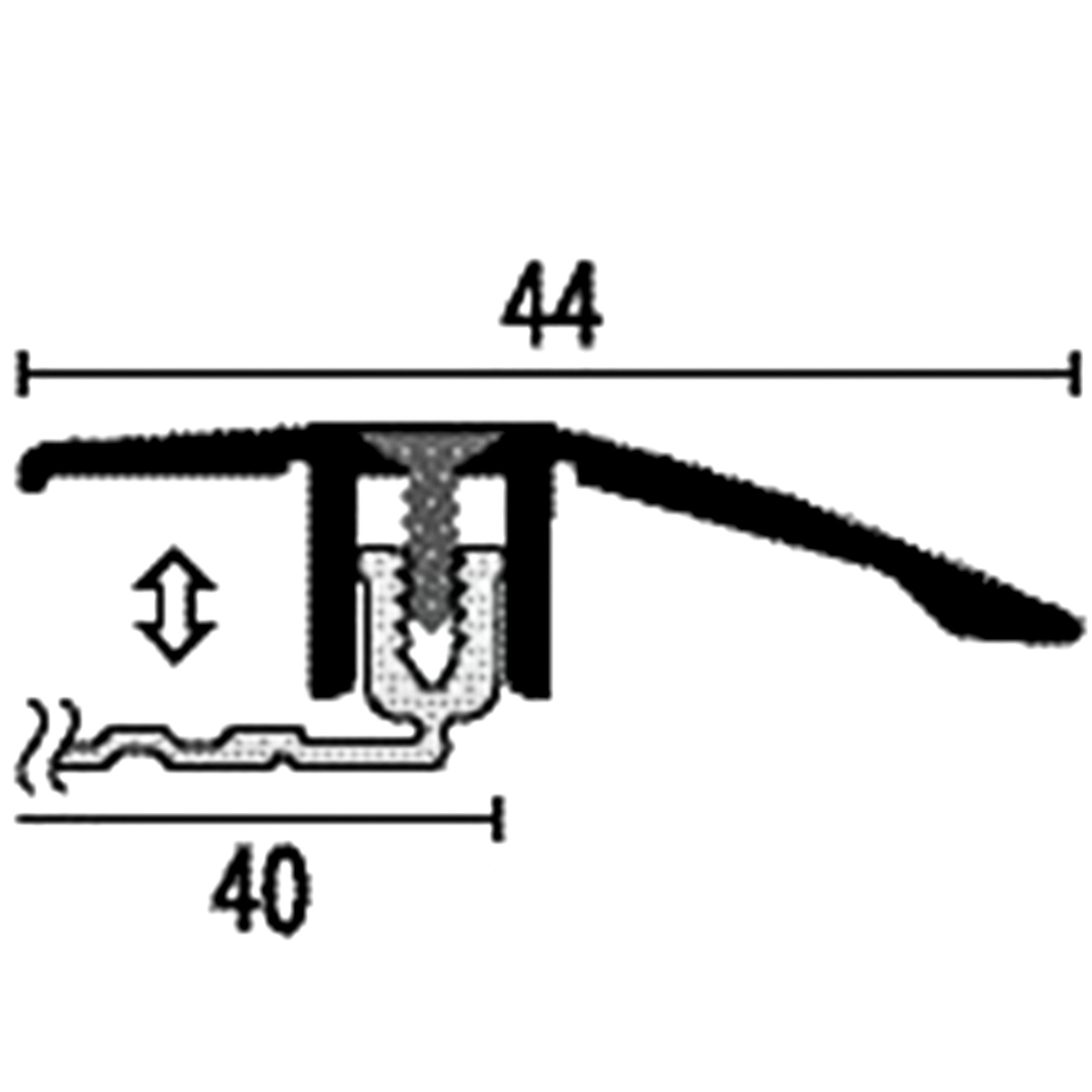- GRÖSSE: Das Übergangsprofil mit den Abmessungen 44 x 6.5 - 16 x 1000 mm besitzt eine Einfasshöhe von 6.5 - 16 mm und schafft einen sauberen Übergang zwischen verschiedenen Bodenbelägen.