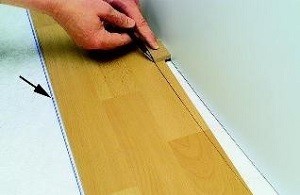 Tipp: Bei Temperaturschwankungen besteht die Möglichkeit, dass es zu Ausdehnungen und Schrumpfungen des Materials kommt. Damit der Schaden am Ende nicht zu groß ist, solltest Du an allen Wänden mindestens 10 - 15 mm für die Dehnungsfugen freilassen. Die Fugen kannst Du später mit Sockelleisten abdecken. Willst Du in größeren Räumen verlegen, kannst Du eine weitere Dehnungsfuge in der Mitte des Raumes machen. Diese ist später durch eine Übergangsleiste abdeckbar.