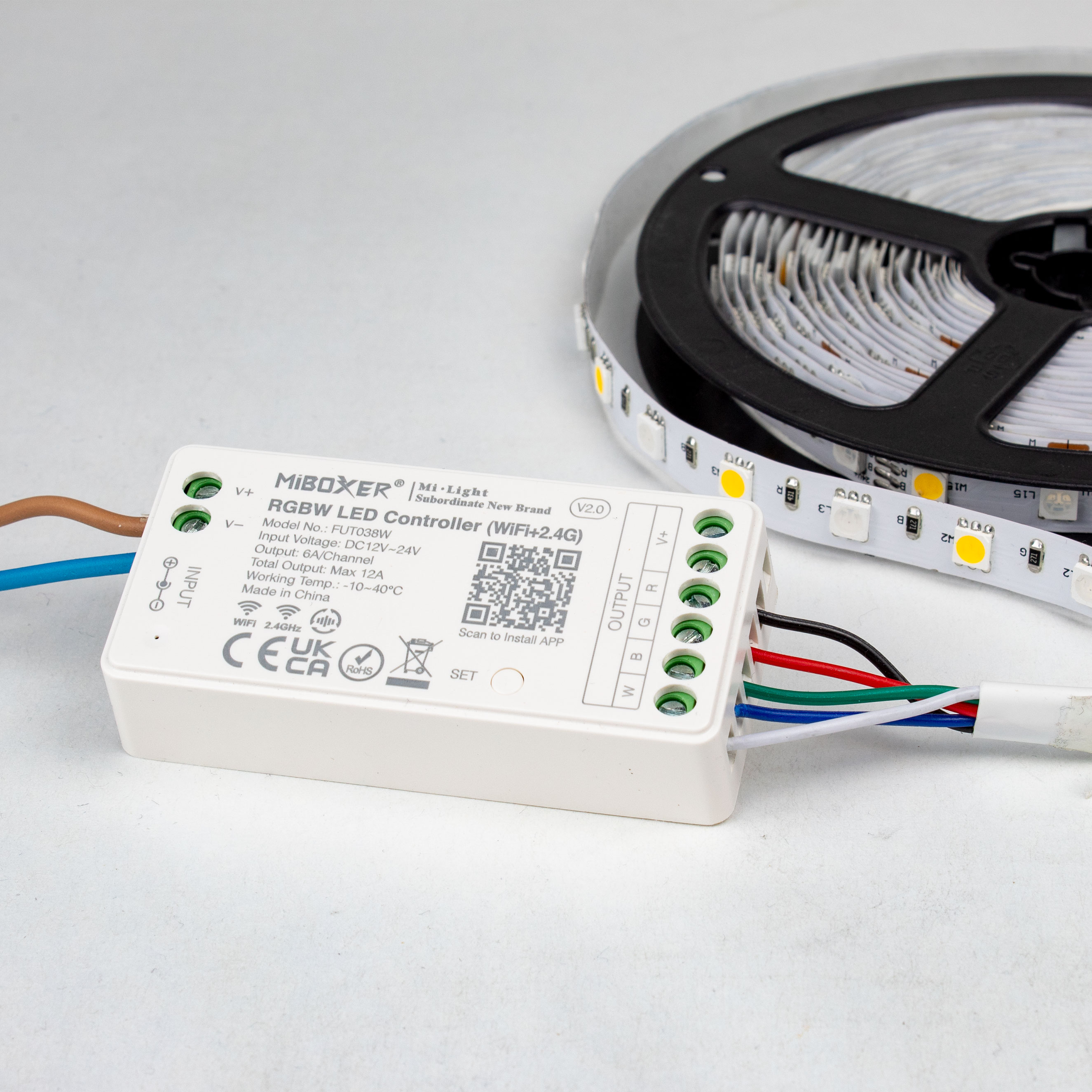 Das LED Set bietet alles, was Du brauchst, um Dein Zuhause oder Büro in ein wahres Lichtermeer zu verwandeln. Es enthält LED Stripes, die in verschiedenen Längen von 5 bis 30 Metern verfügbar sind, um sich perfekt an deine Räumlichkeiten anzupassen. Der passende LED Trafo sorgt für die nötige Stromversorgung, während der WLAN Controller dir die Freiheit gibt, die Lichtfarbe und Helligkeit ganz bequem per App oder mit der praktischen 4-Zonen Fernbedienung zu steuern.