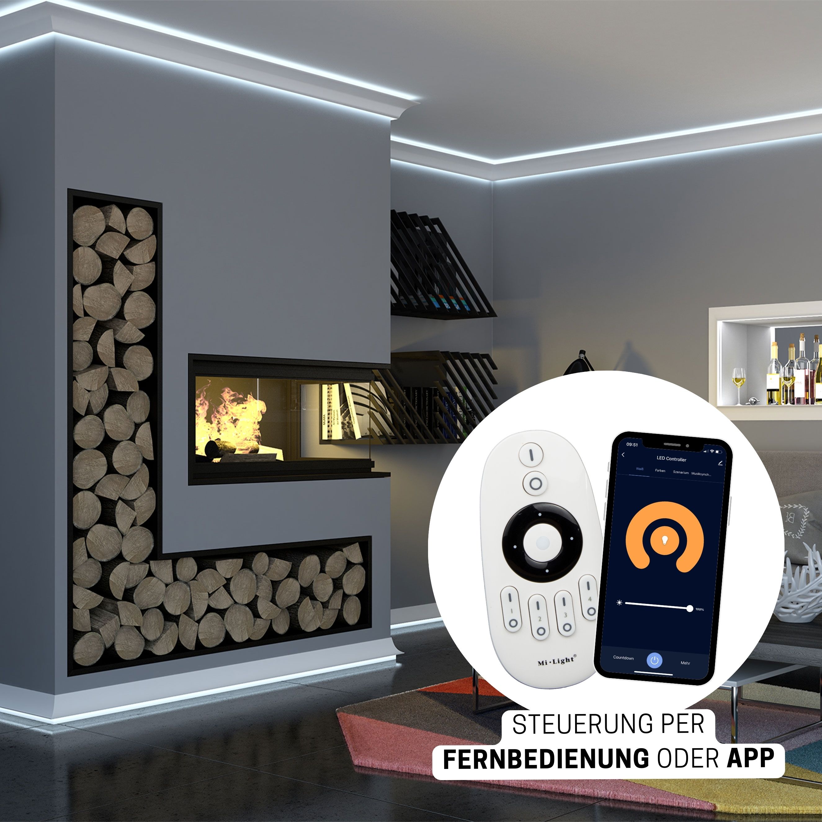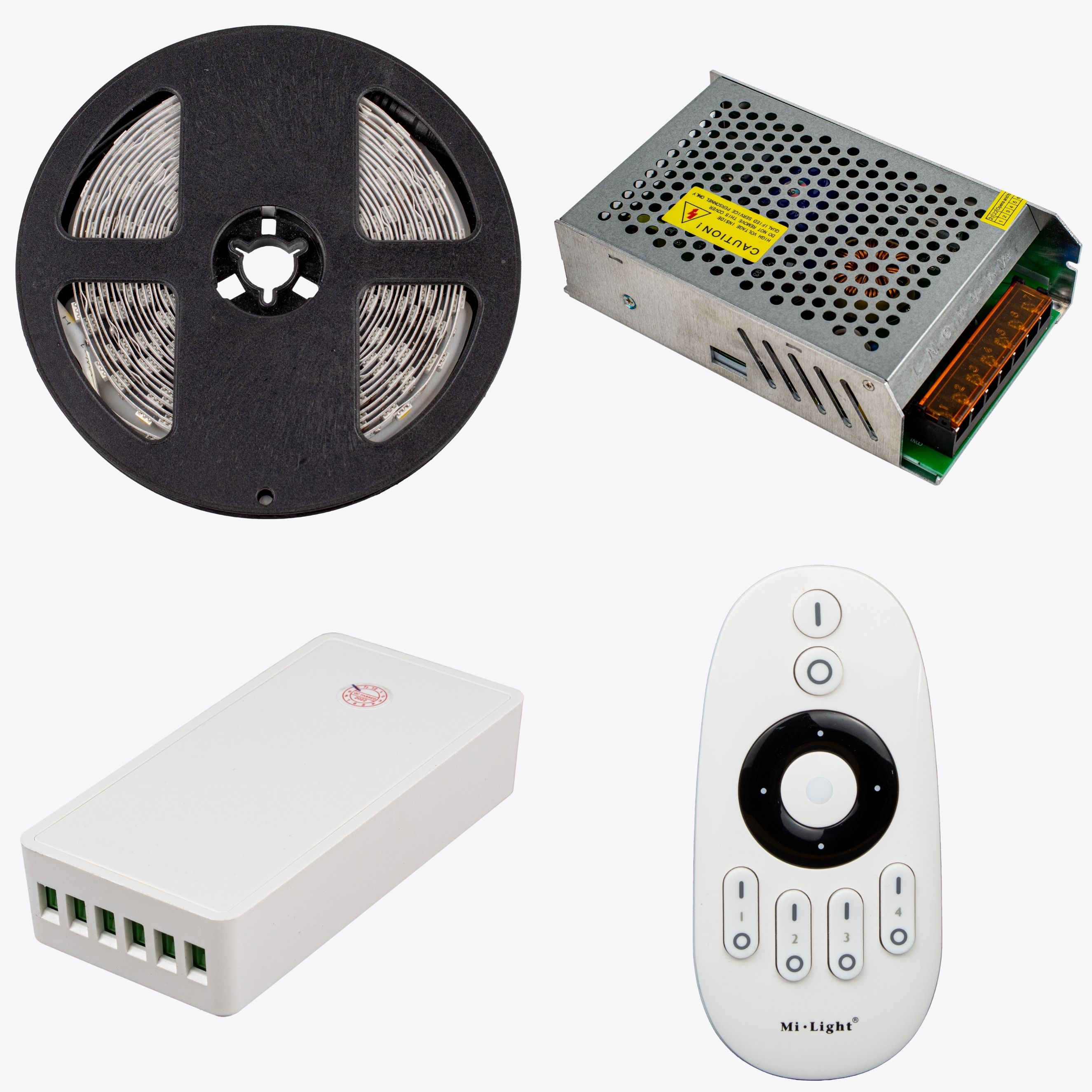 5m LED-Band, 1x Trafo 100W, 1x wahlweise Controller mit Fernbedienung und 1x Verbinder |
