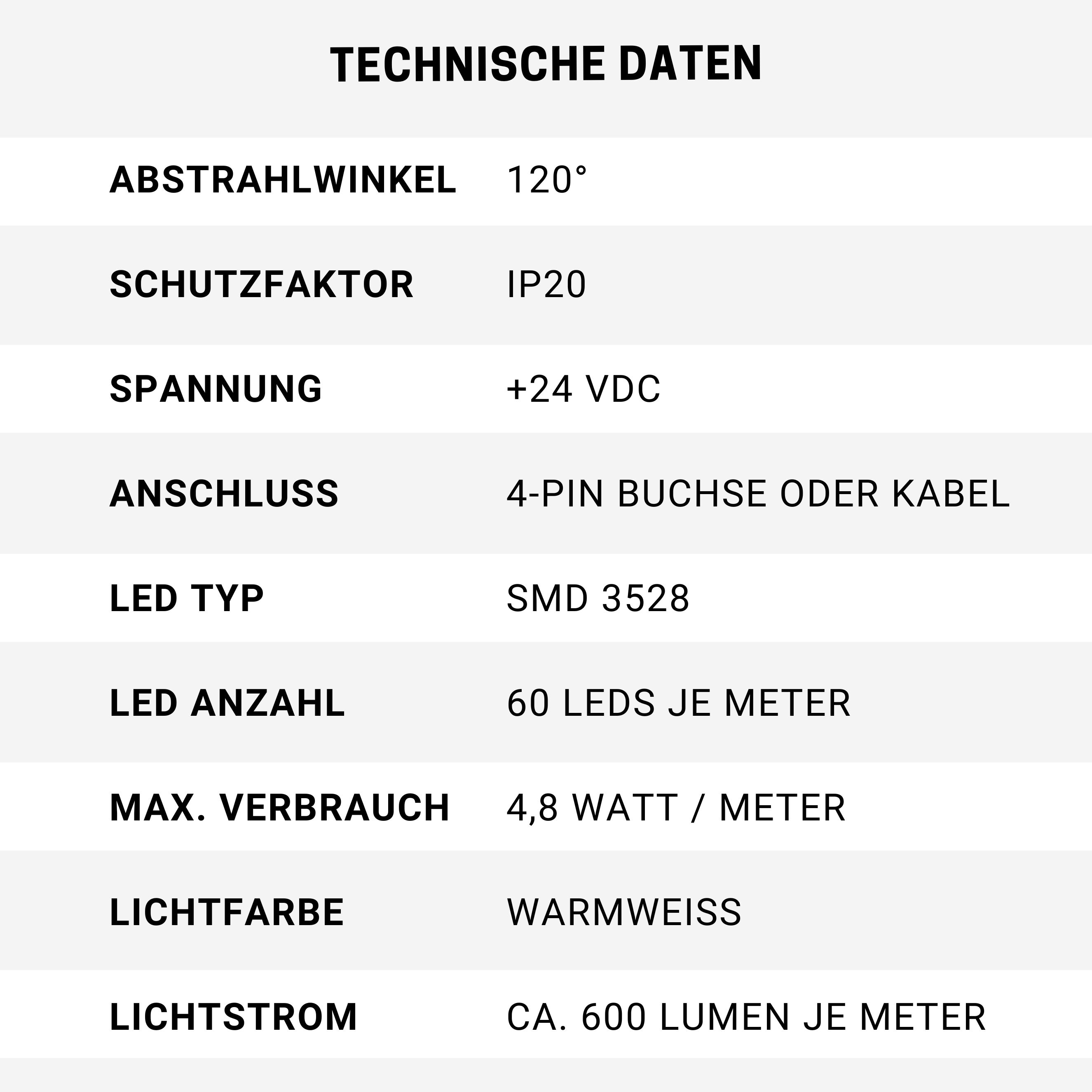 - LED ANZAHL: Das 10 mm breite LED Band ist mit 60 LEDs pro Meter ausgestattet