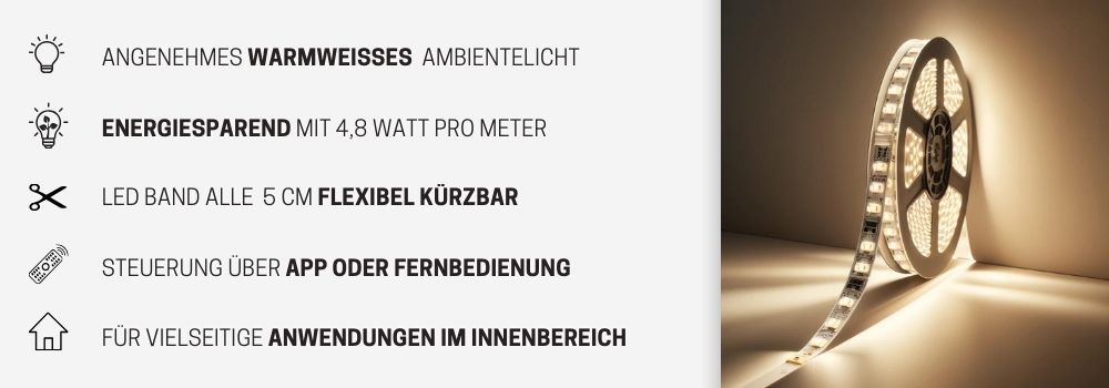 - LED TYP: SMD 3528 – sorgt für ein schönes Ambientelicht in Warmweiß