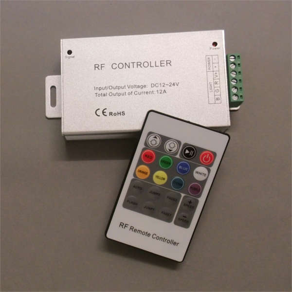 20m LED-Band, 1x Trafo 300W mit Lüfter, 1x Controller, 1x Verstärker 144W, 4x Schnellverbinder, 6x Eckverbinder