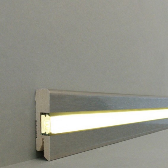 Licht Sockelleiste "Chemnitz" MDF 16 x 58 x 2500 mm Edelstahl gebürstet LED by PROVISTON