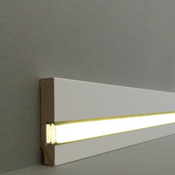 Licht Sockelleiste "Cuxhaven" MDF 16 x 70 x 2500 mm Weiß LED Fußleiste by PROVISTON
