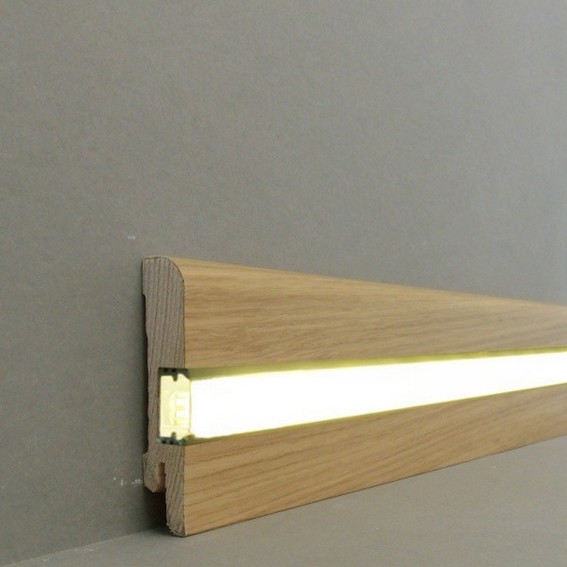 Licht Sockelleiste "Erfurt" Echtholzfurnier 15 x 70 x 2500 mm Eiche lackiert LED by PROVISTON