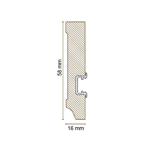 - GRÖSSE: Die Fußleiste mit den Abmessungen 16 x 58 x 2500 mm schafft einen sauberen Übergang zwischen Boden und Wand.
