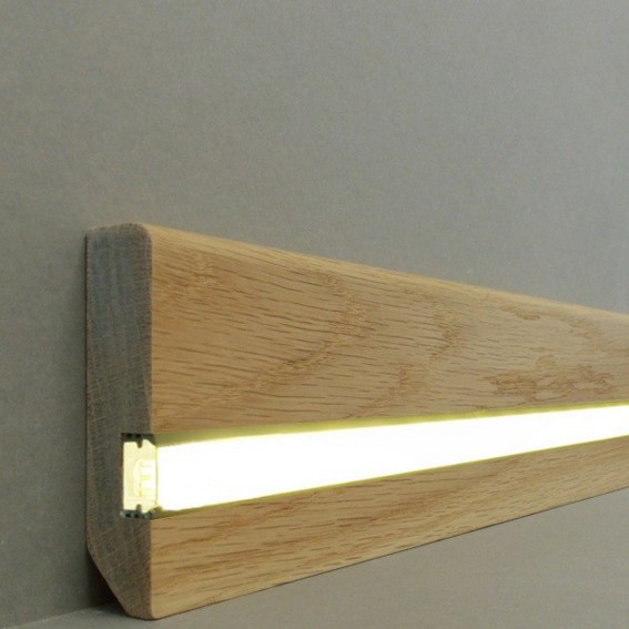 Licht Sockelleiste "Köln" Massivholz 20 x 80 x 2400 mm Eiche LED Fußleiste by PROVISTON