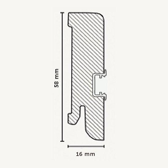 - GRÖSSE: Die Fußleiste mit den Abmessungen 16 x 58 x 2500 mm schafft einen sauberen Übergang zwischen Boden und Wand.