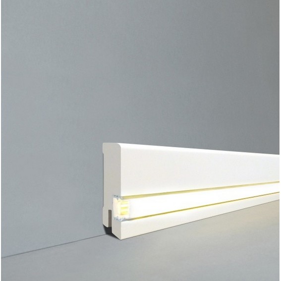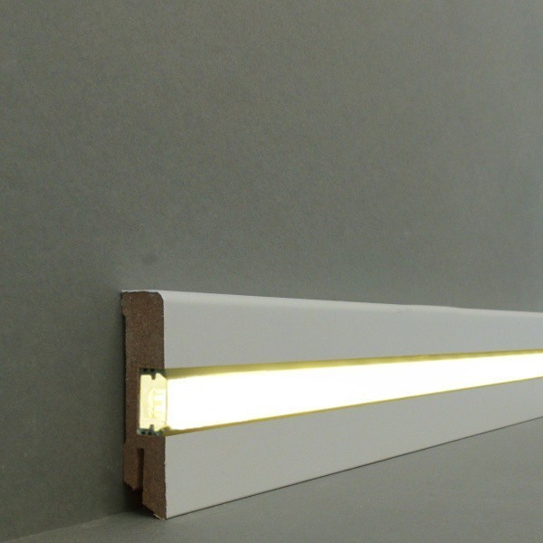 Licht-Sockelleiste "Ulm" MDF Foliert 16 x 58 x 2500 mm Weiß moderne Lichtleiste by PROVISTON