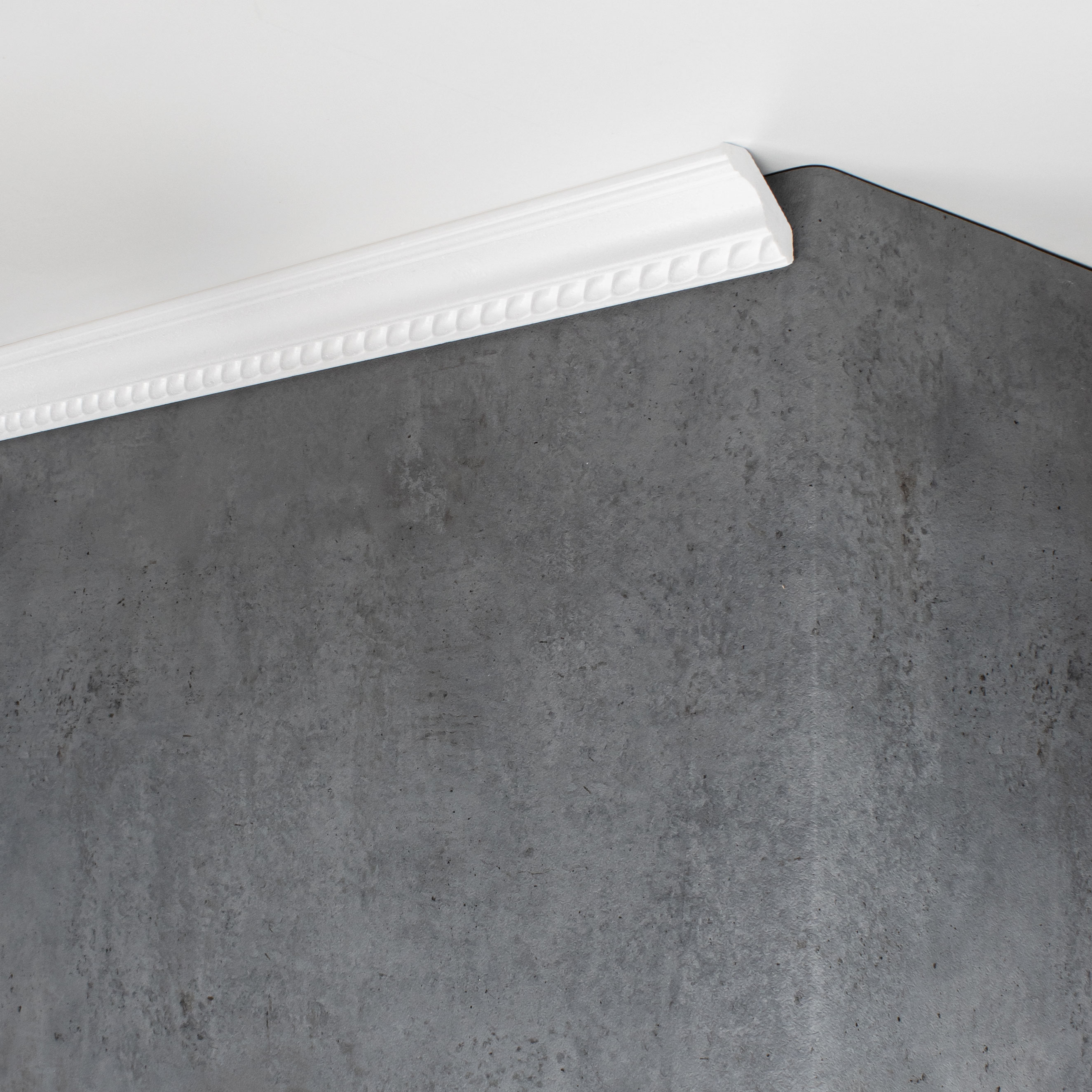 Diese elegante Deckenleiste besticht vor allem durch ein stilvolles unaufdringliches Profil-Design. Damit sorgt Sie für ein optisch schönes Raumbild. Die Stuckleiste lässt sich ganz einfach und sauber mit passendem Montagekleber befestigen. Bestellen Sie unter dem Reiter "Zubehör" passendes Montagezubehör gleich mit dazu.