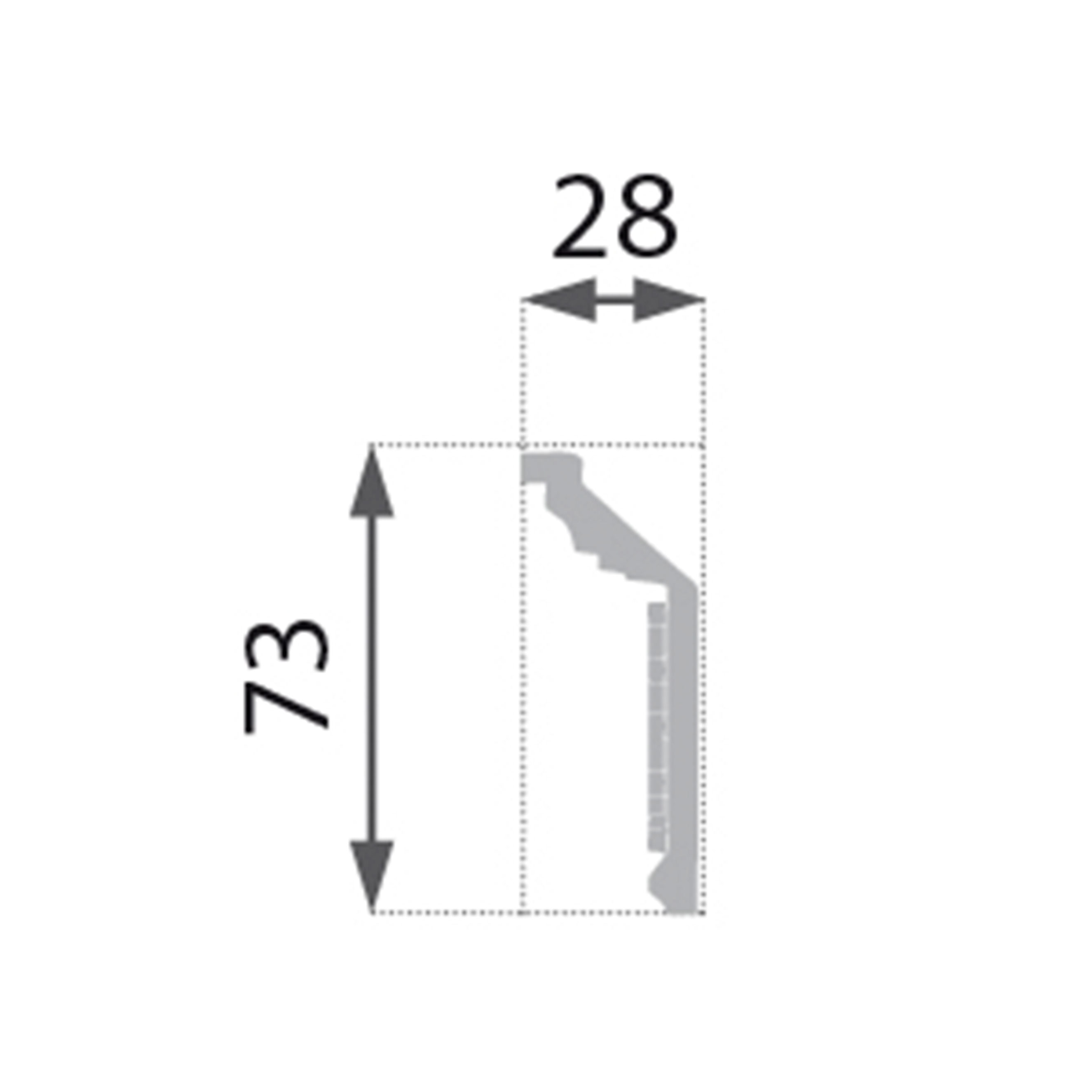 - GRÖSSE: Die Stuckleiste mit den Abmessungen 28 x 73 x 2000 mm schafft einen sauberen Übergang an der Wand oder Decke.
