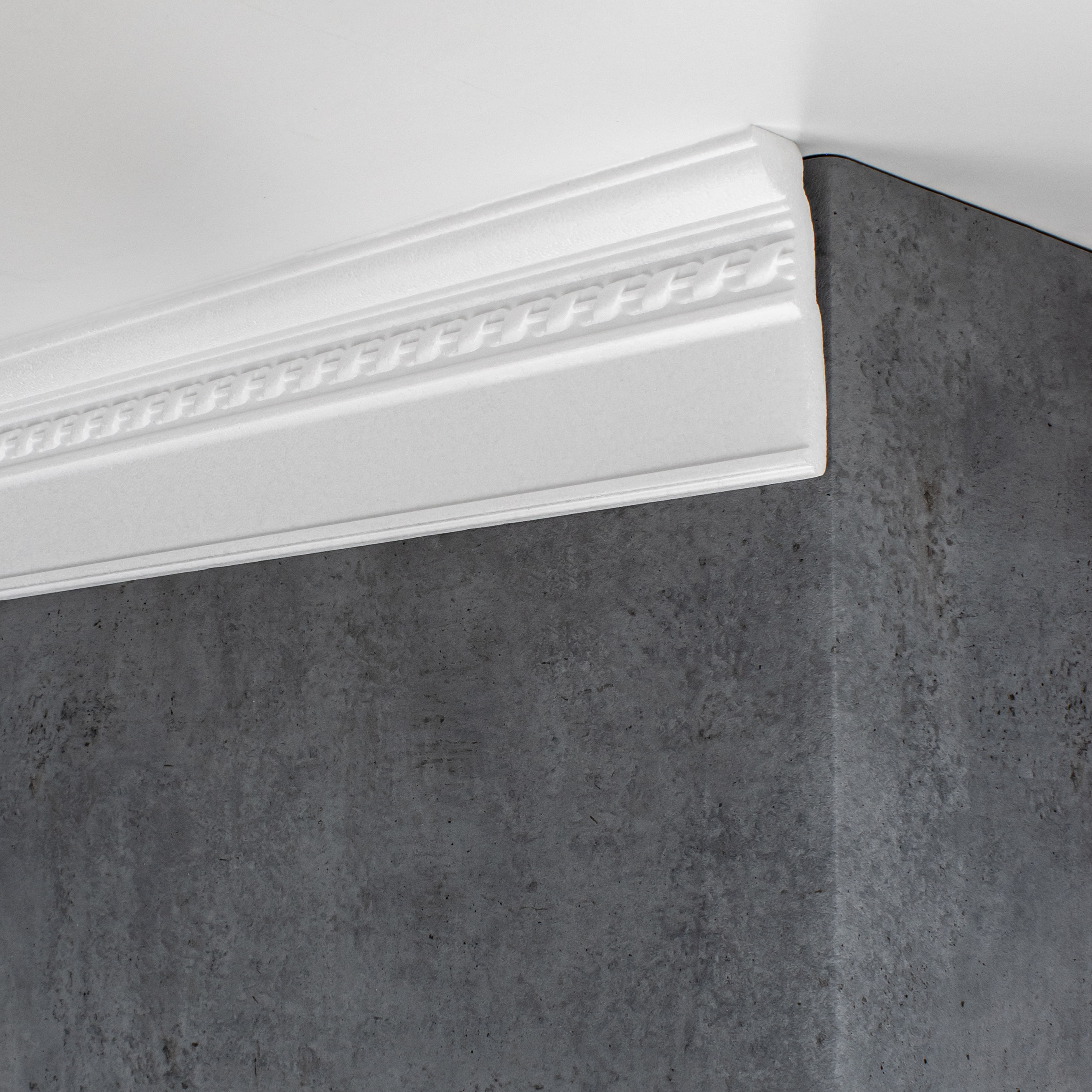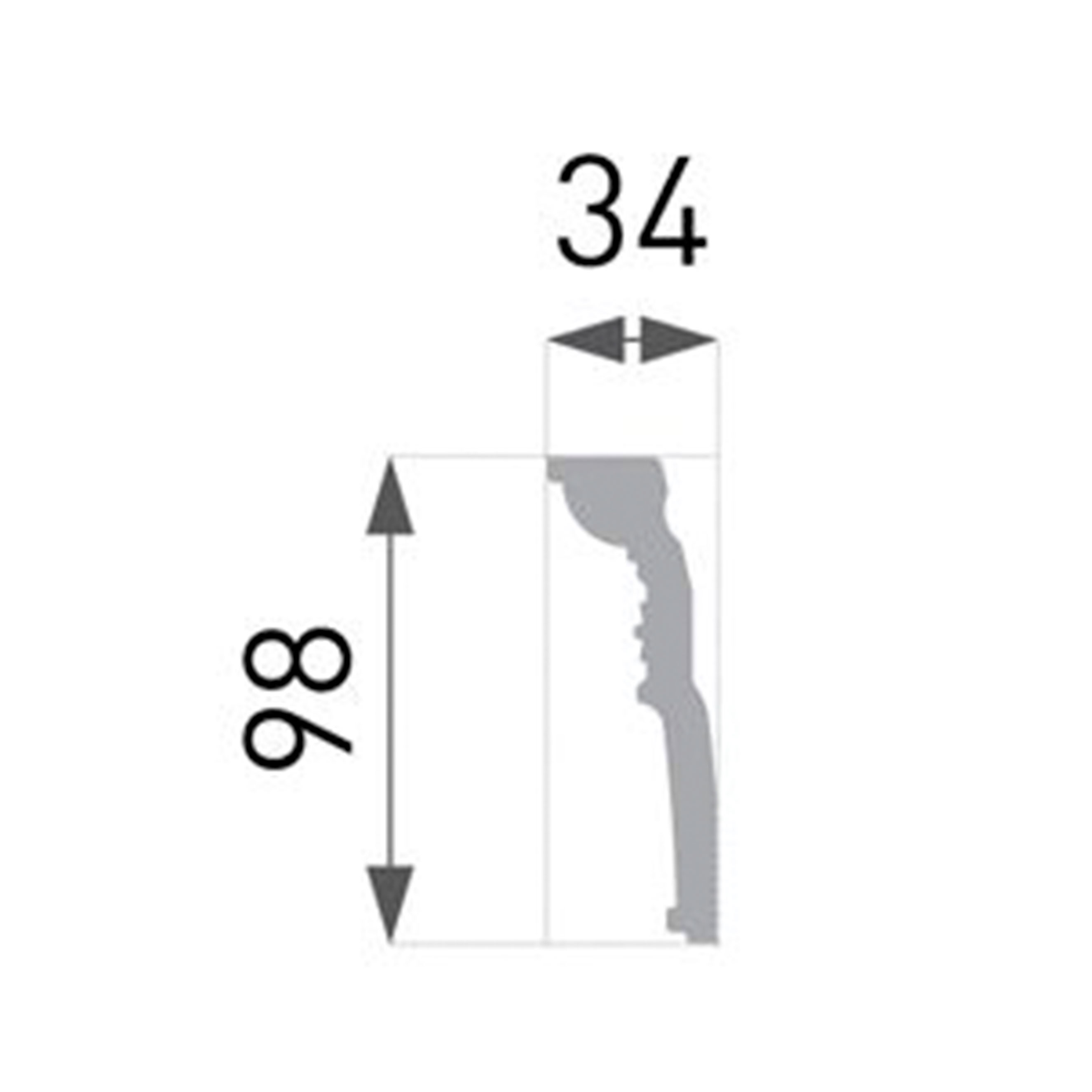 - GRÖSSE: Die Stuckleiste mit den Abmessungen 34 x 98 x 2000 mm schafft einen sauberen Übergang an der Wand oder Decke.
