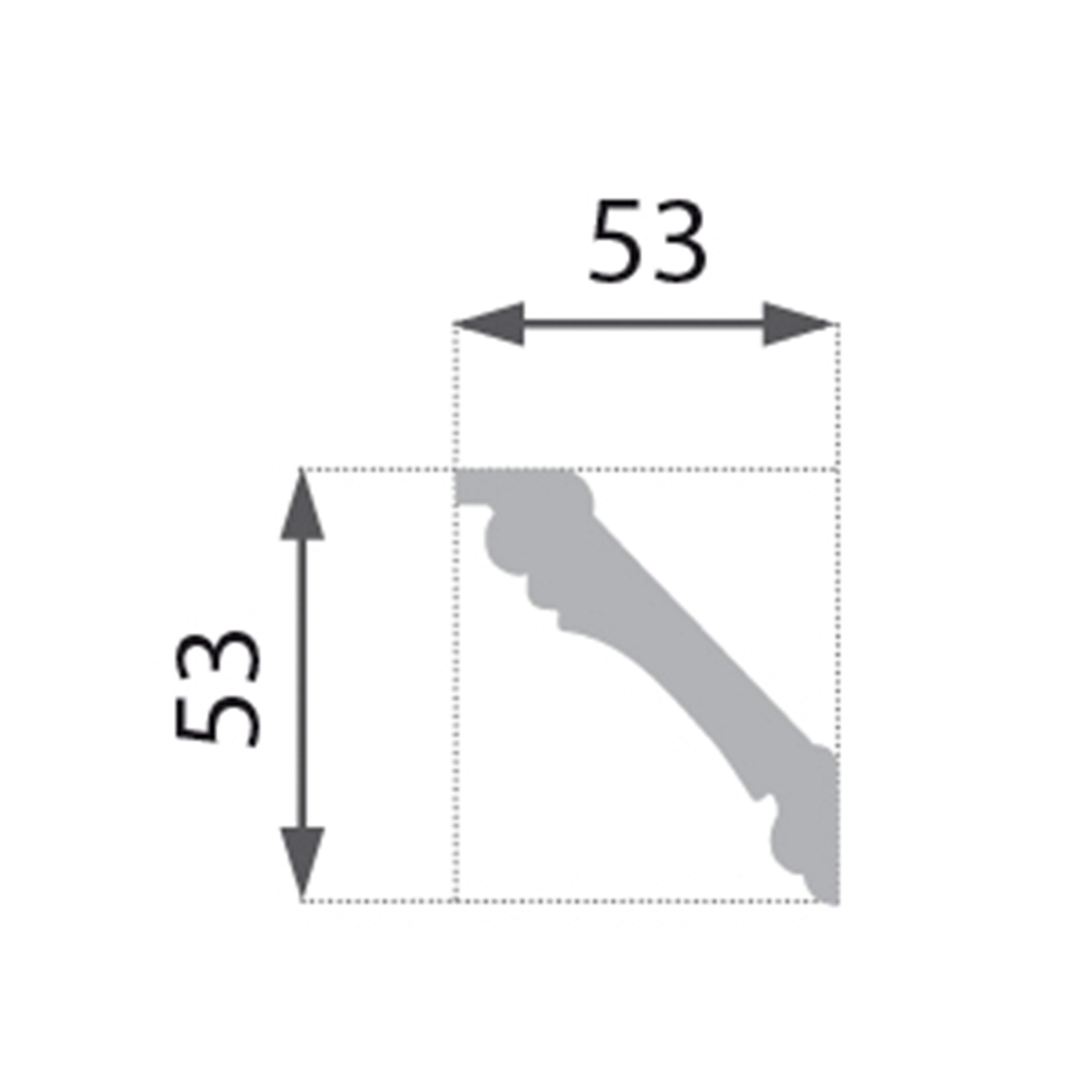 Die Maße der Stuckleiste sind im Datenblatt angegeben.