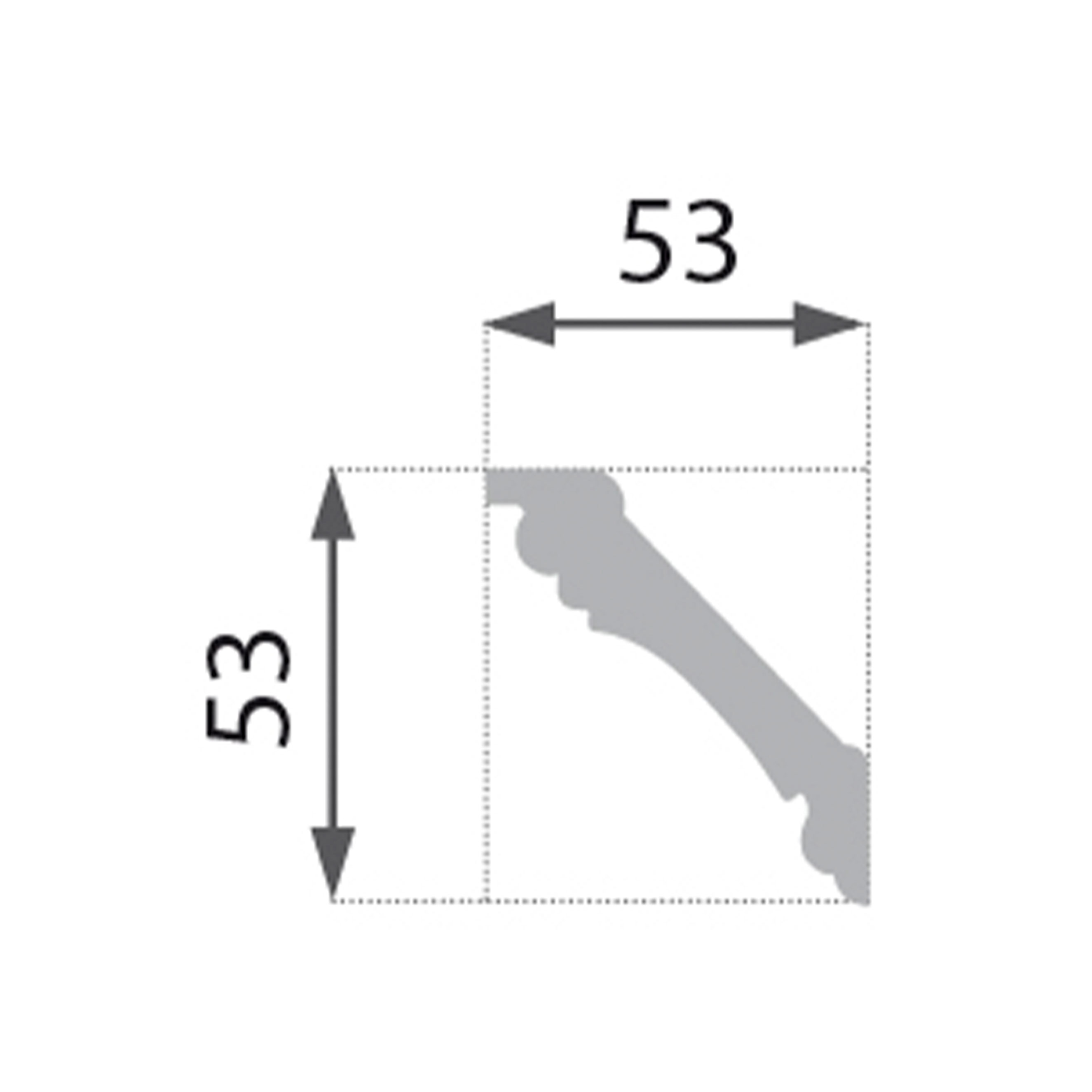 - GRÖSSE: Die Stuckleiste mit den Abmessungen 53 x 53 x 2000 mm schafft einen sauberen Übergang an der Wand oder Decke.