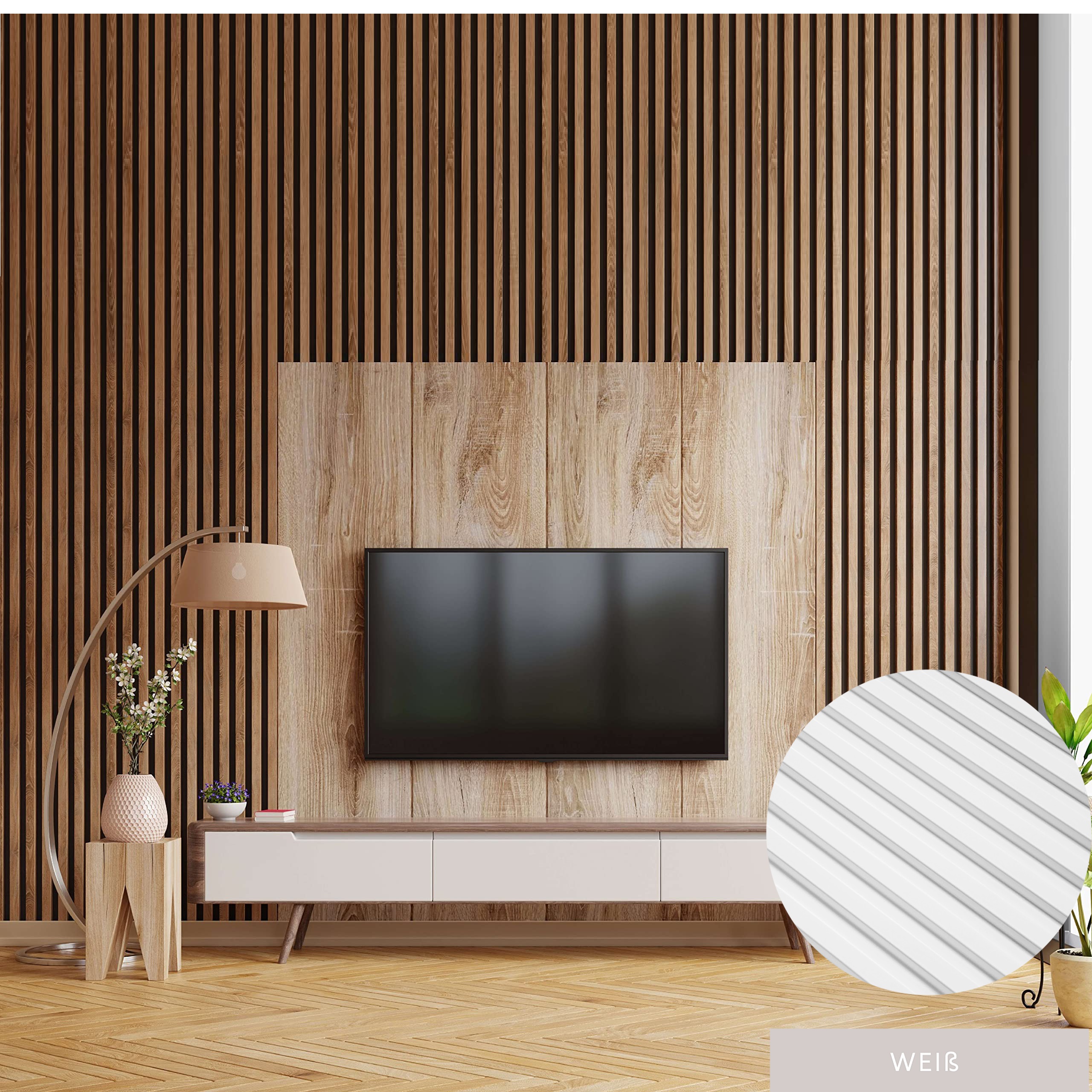 Mardom | Akustik 3D Wandpaneel | Höhe 2700 mm | Breite 120 mm | Weiß grundiert | Modern | Breite beliebig erweiterbar