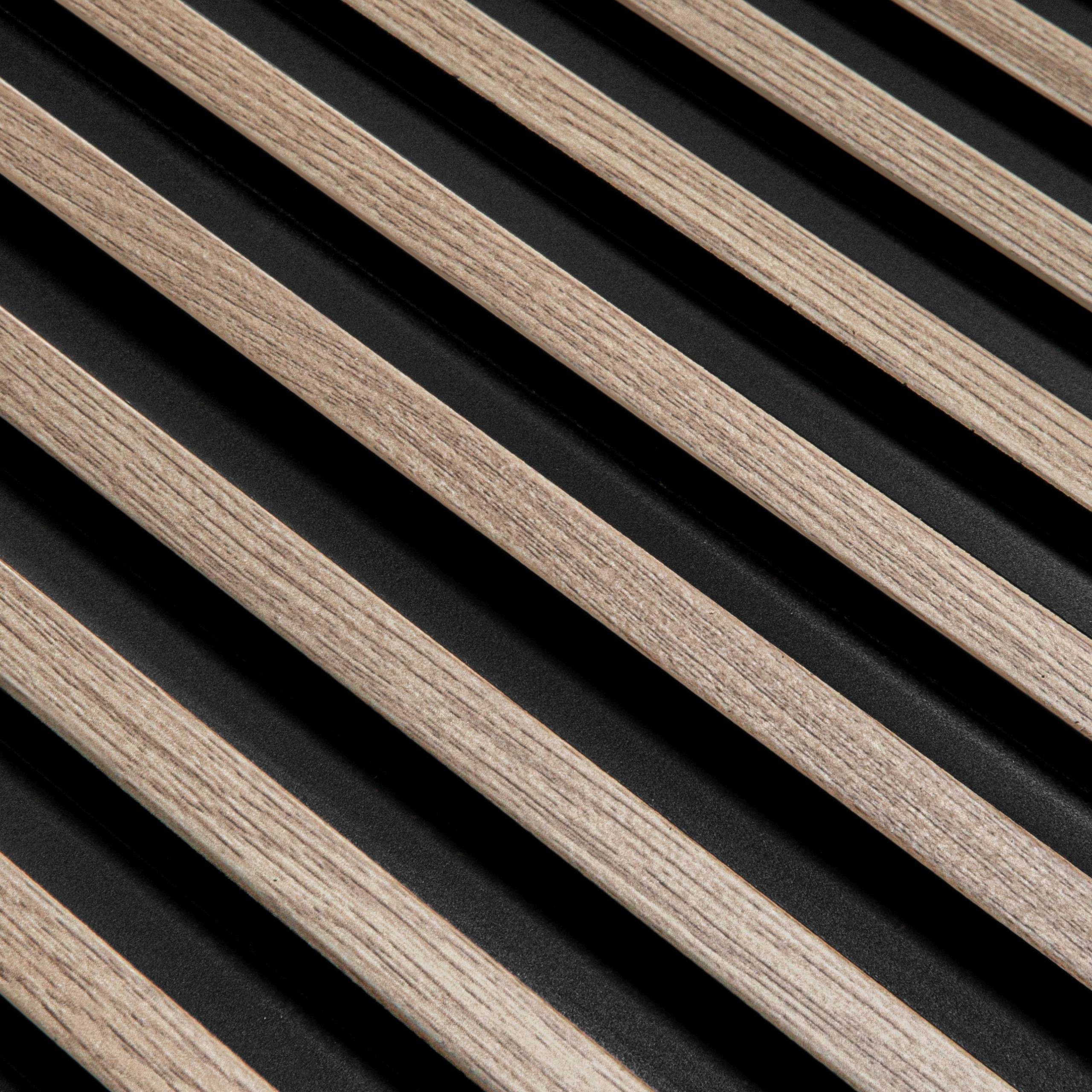 Die Akustik 3D Wandpaneele eröffnen Ihnen völlig neue Gestaltungsmöglichkeiten an der Wand. Das elegante gradlinige Lamellenmuster in warmer natürlicher Holzoptik setzt jede Wand - ob im Wohnzimmer, Flur oder Bad - perfekt in Szene. Die 10 mm schmalen Designstreifen in Holzoptik und der 10 mm schmale schwarze Lamellenabstand erzeugt ein dichtes dreidimensionales Muster. Die dekorative 3D Wandpaneele sind zudem leicht anzubringen und äußerst pflegeleicht. Die Akustikpaneele können Sie als Set in verschiedenen Größen bei uns bestellen.