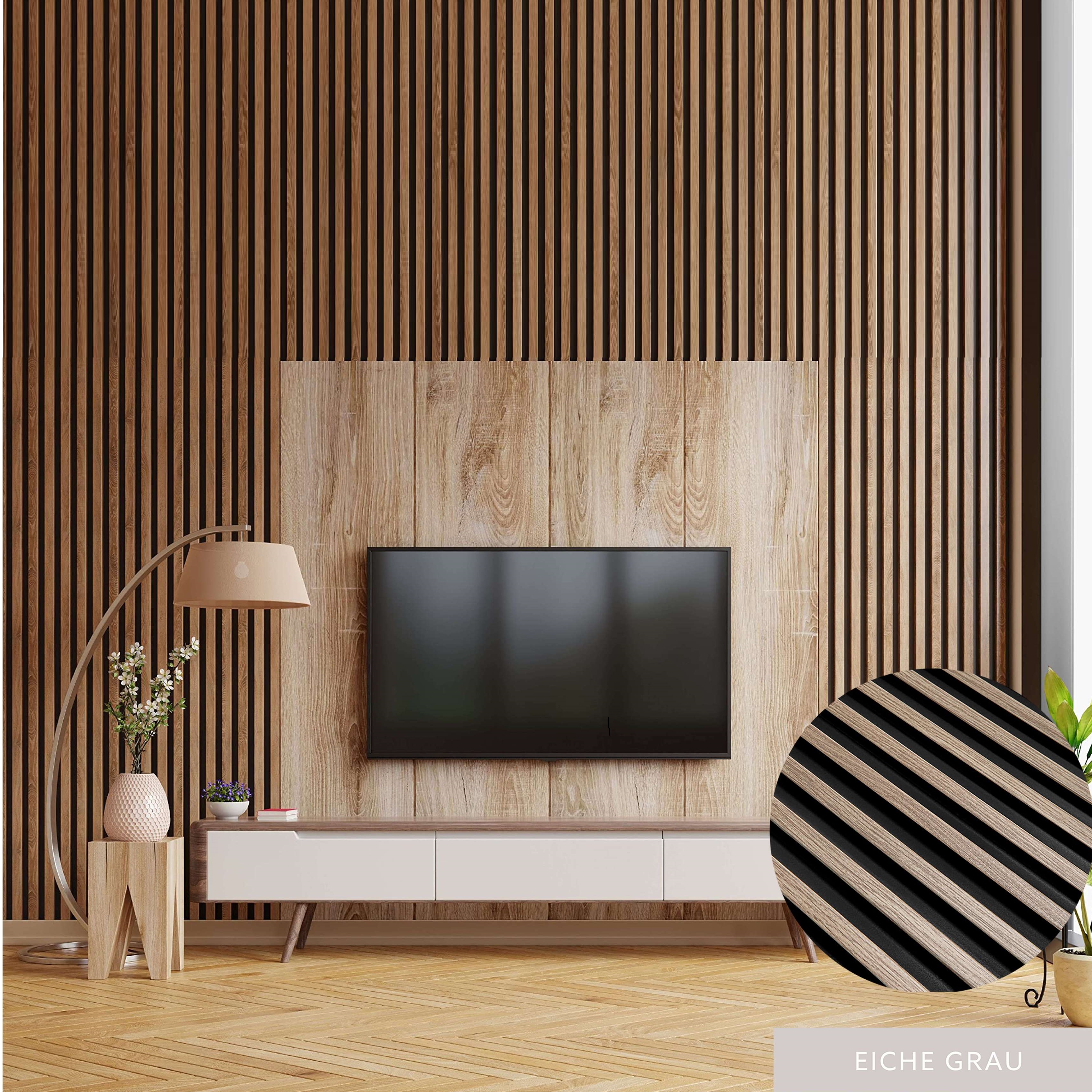 Akustikpaneele sind der Trend in der Raumgestaltung und gewinnen immer mehr an Beliebtheit. Die Wandpaneele sind nicht nur optisch ein Hingucker sondern verbessern auch die Raumakustik indem sie dabei helfen Lautstärke und Lärmentwicklung besser zu regulieren. Die Lamellen Wandpaneele aus Holz oder in Holzoptik wirken modern und erzeugen zugleich ein natürliches und warmes Raumambiente. Ob vollflächig an der gesamten Wand oder als einzelne Akzentabschnitte - mit Akustik Wandpaneelen kreieren Sie ein einzigartiges Wohlfühlambiente, dass sich sehen und hören lässt.
