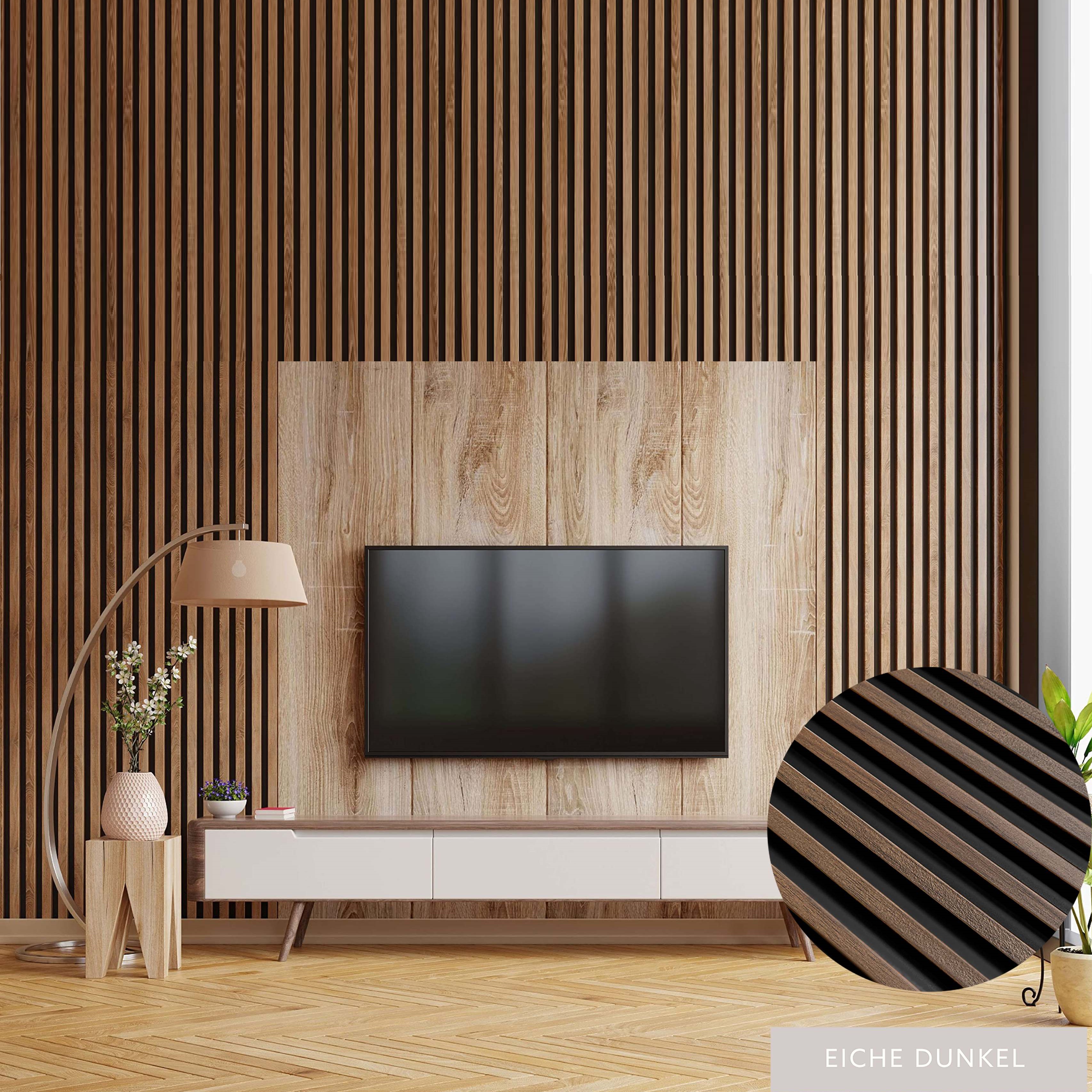 Akustikpaneele sind der Trend in der Raumgestaltung und gewinnen immer mehr an Beliebtheit. Die Wandpaneele sind nicht nur optisch ein Hingucker sondern verbessern auch die Raumakustik indem sie dabei helfen Lautstärke und Lärmentwicklung besser zu regulieren. Die Lamellen Wandpaneele aus Holz oder in Holzoptik wirken modern und erzeugen zugleich ein natürliches und warmes Raumambiente. Ob vollflächig an der gesamten Wand oder als einzelne Akzentabschnitte - mit Akustik Wandpaneelen kreieren Sie ein einzigartiges Wohlfühlambiente, dass sich sehen und hören lässt.