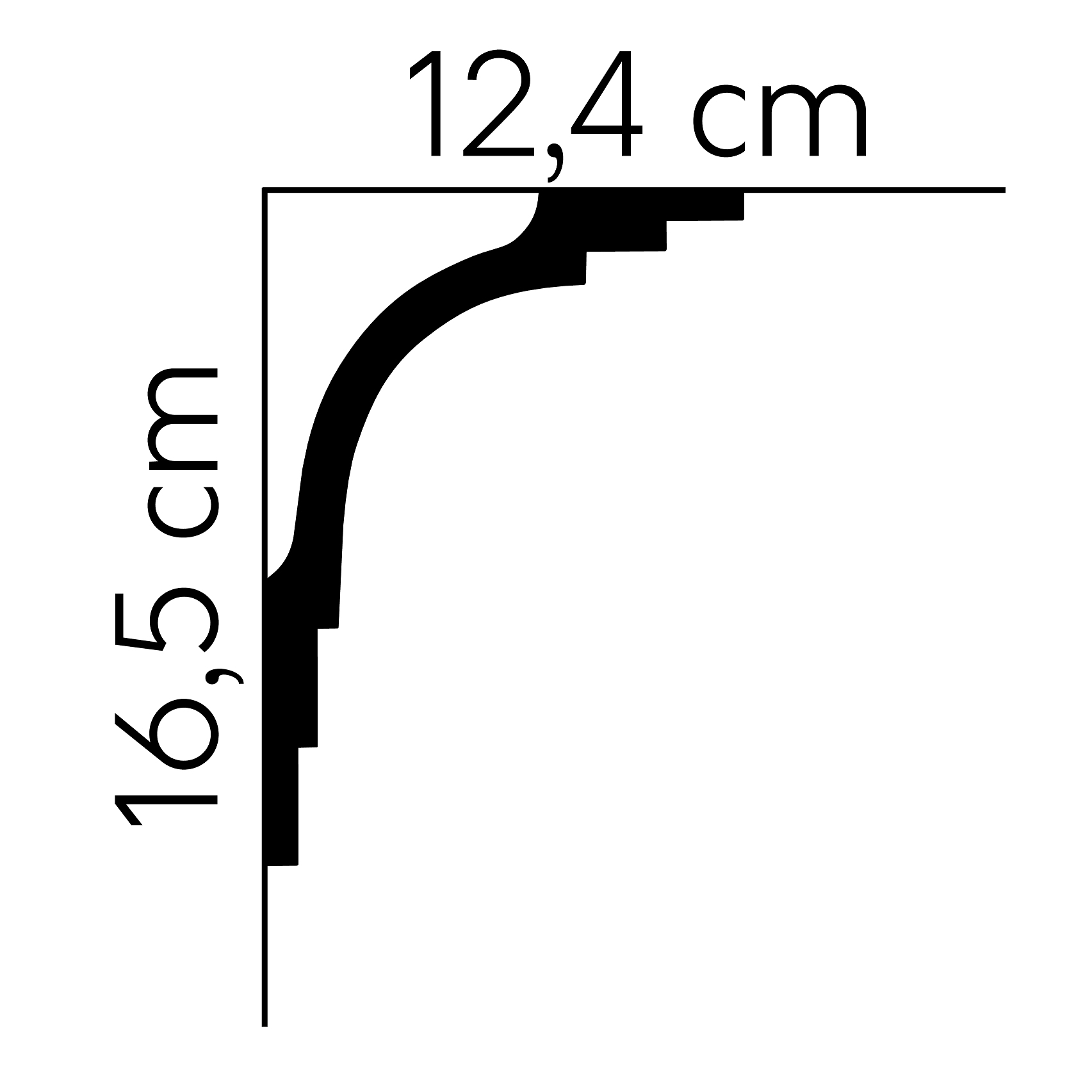 - GRÖSSE: Die Stuckleiste mit den Abmessungen 124 x 165 x 2000 mm schafft einen sauberen Übergang an der Wand oder Decke.