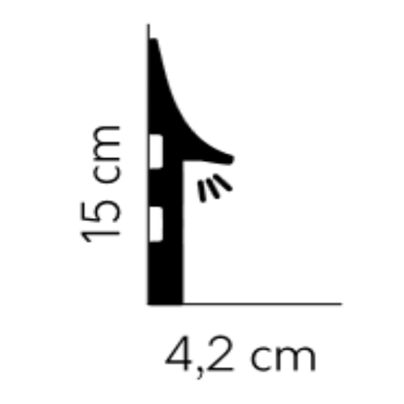 - GRÖSSE: Die Fußleiste mit den Abmessungen 42 x 150 x 2000 mm schafft einen sauberen Übergang zwischen Boden und Wand.