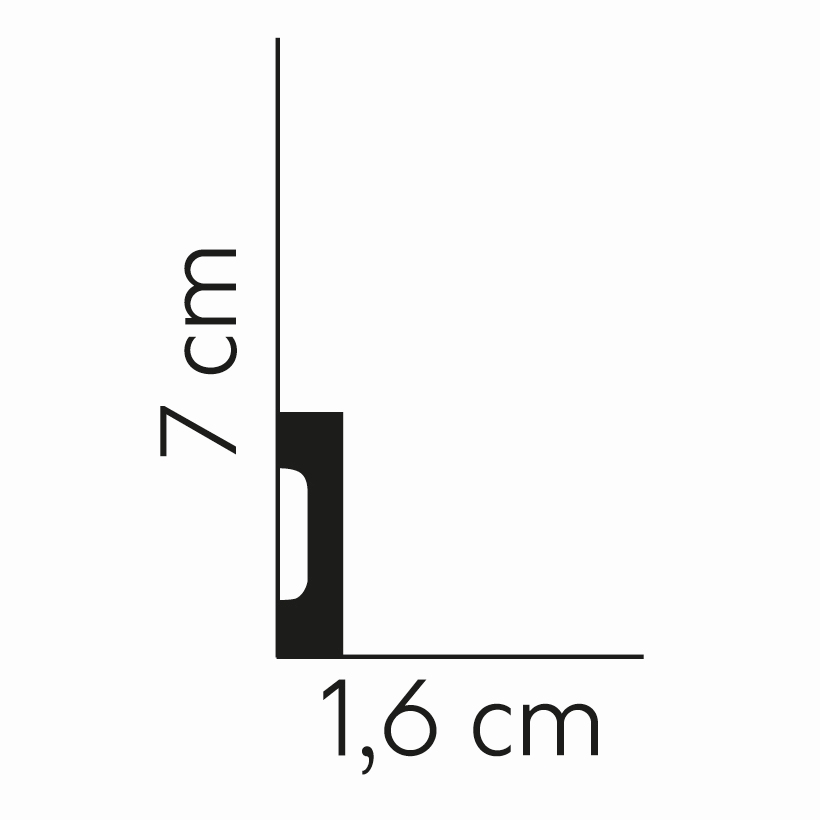 - GRÖSSE: Die Fußleiste mit den Abmessungen 16 x 70 x 2000 mm schafft einen sauberen Übergang zwischen Boden und Wand.