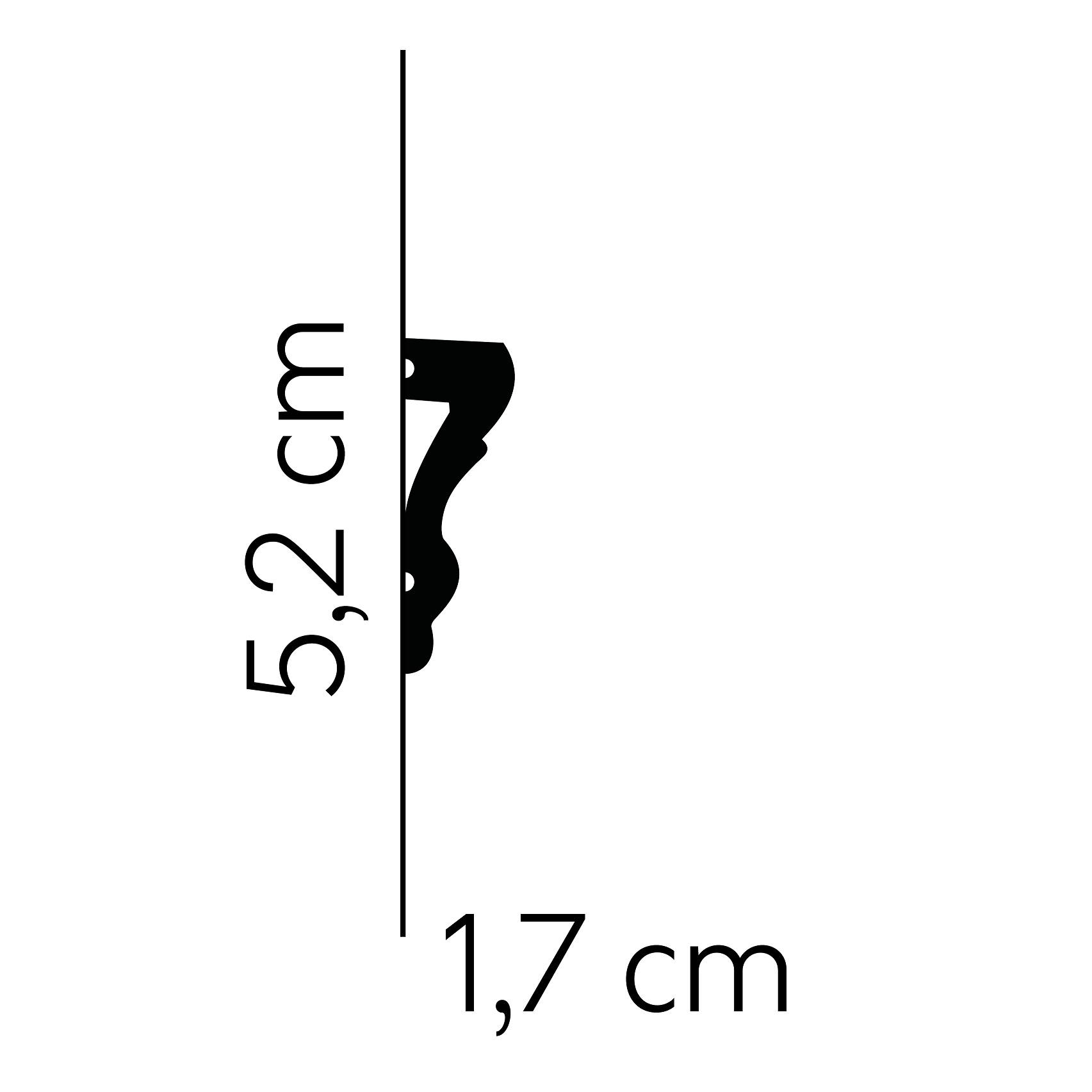 - GRÖSSE: Die Stuckleiste mit den Abmessungen 17 x 52 x 2000 mm schafft einen sauberen Übergang an der Wand oder Decke.