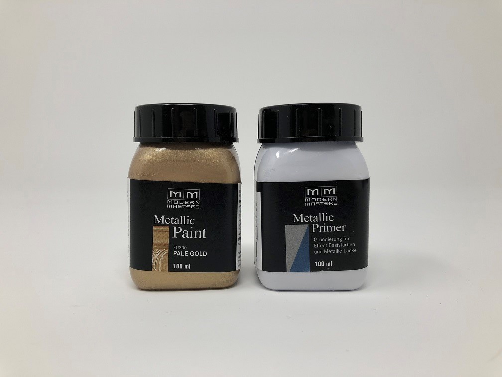 Die Lacke des Herstellers Modern Masters sind spezielle wasser-basierte, schnell trocknende Metallic-Lacke, die sich durch höchste Farbbrillanz und einen stark ausgeprägten metallischen Glanz auszeichnen.