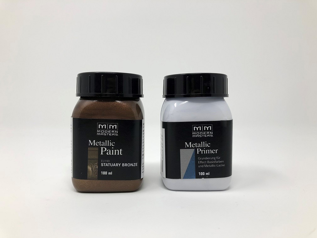 Die Lacke des Herstellers Modern Masters sind spezielle wasser-basierte, schnell trocknende Metallic-Lacke, die sich durch höchste Farbbrillanz und einen stark ausgeprägten metallischen Glanz auszeichnen.