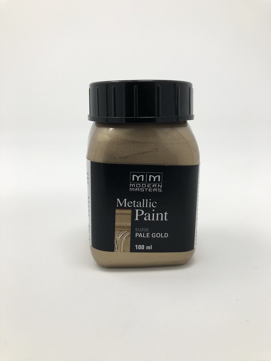 Die Lacke des Herstellers Modern Masters sind spezielle wasser-basierte, schnell trocknende Metallic-Lacke, die sich durch höchste Farbbrillanz und einen stark ausgeprägten metallischen Glanz auszeichnen.