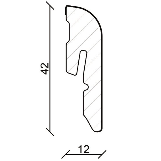 - GRÖSSE: Die Fußleiste mit den Abmessungen 12 x 42 x 2400 mm schafft einen sauberen Übergang zwischen Boden und Wand.