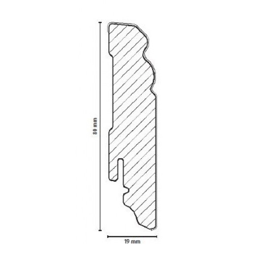 - GRÖSSE: Die Fußleiste mit den Abmessungen 19 x 80 x 2400 mm schafft einen sauberen Übergang zwischen Boden und Wand.